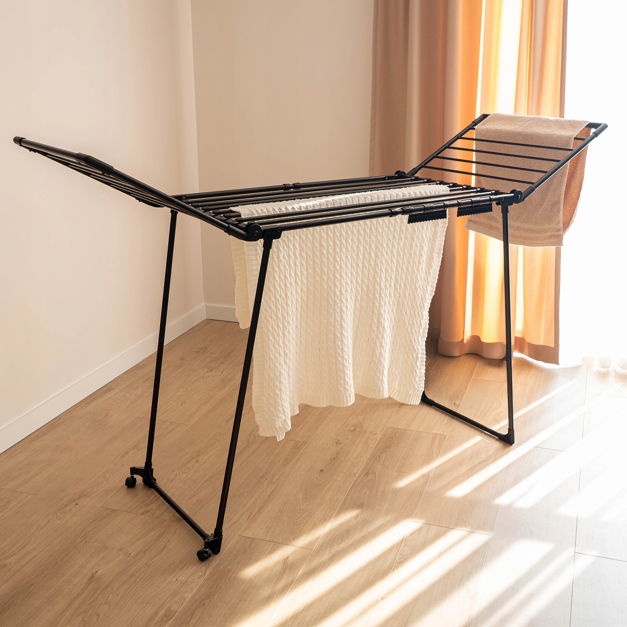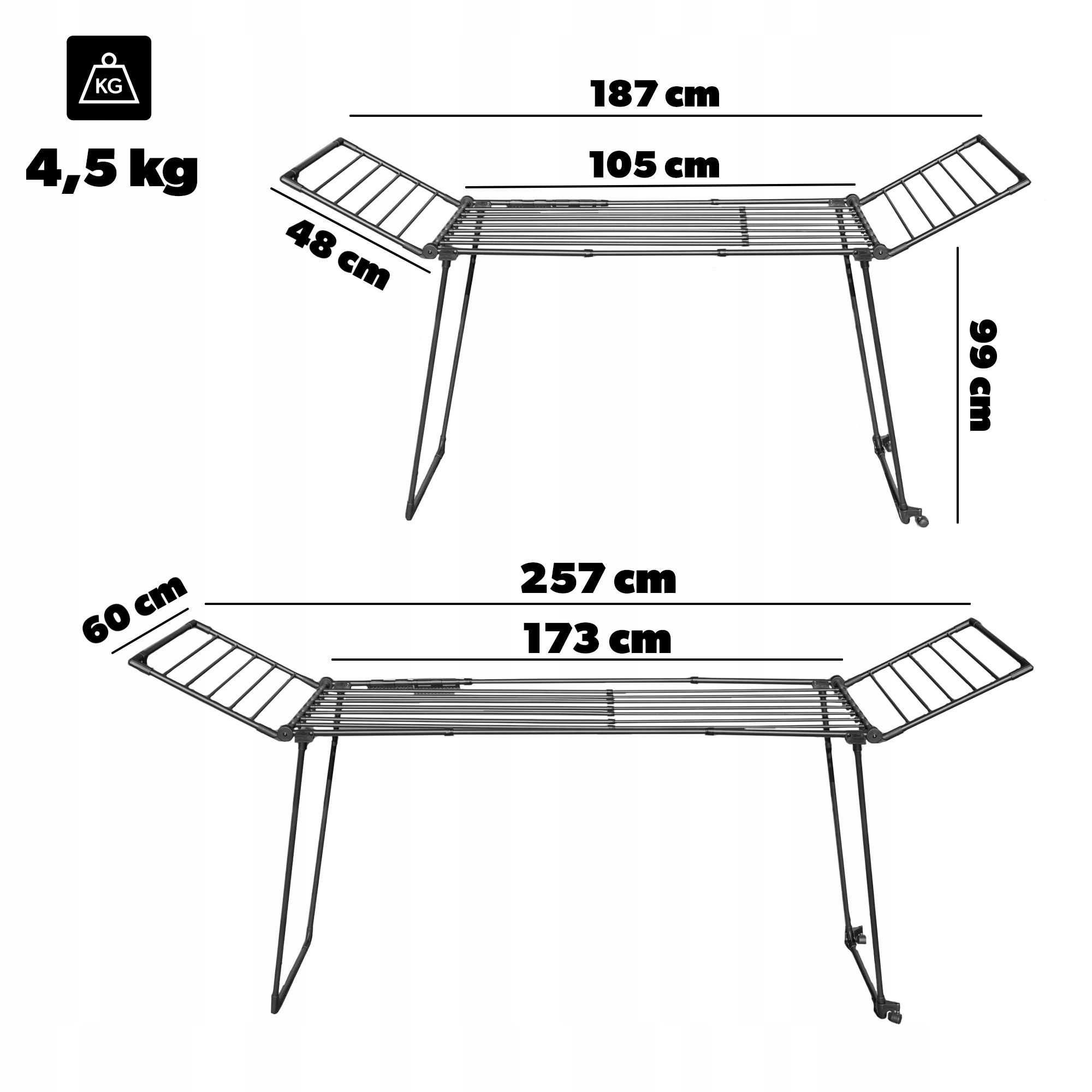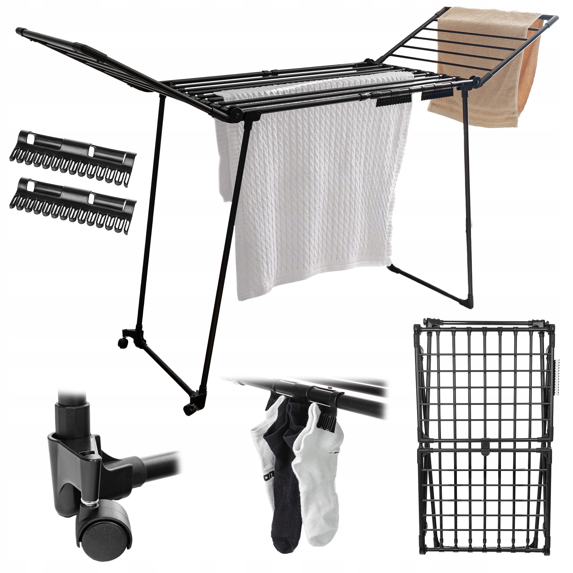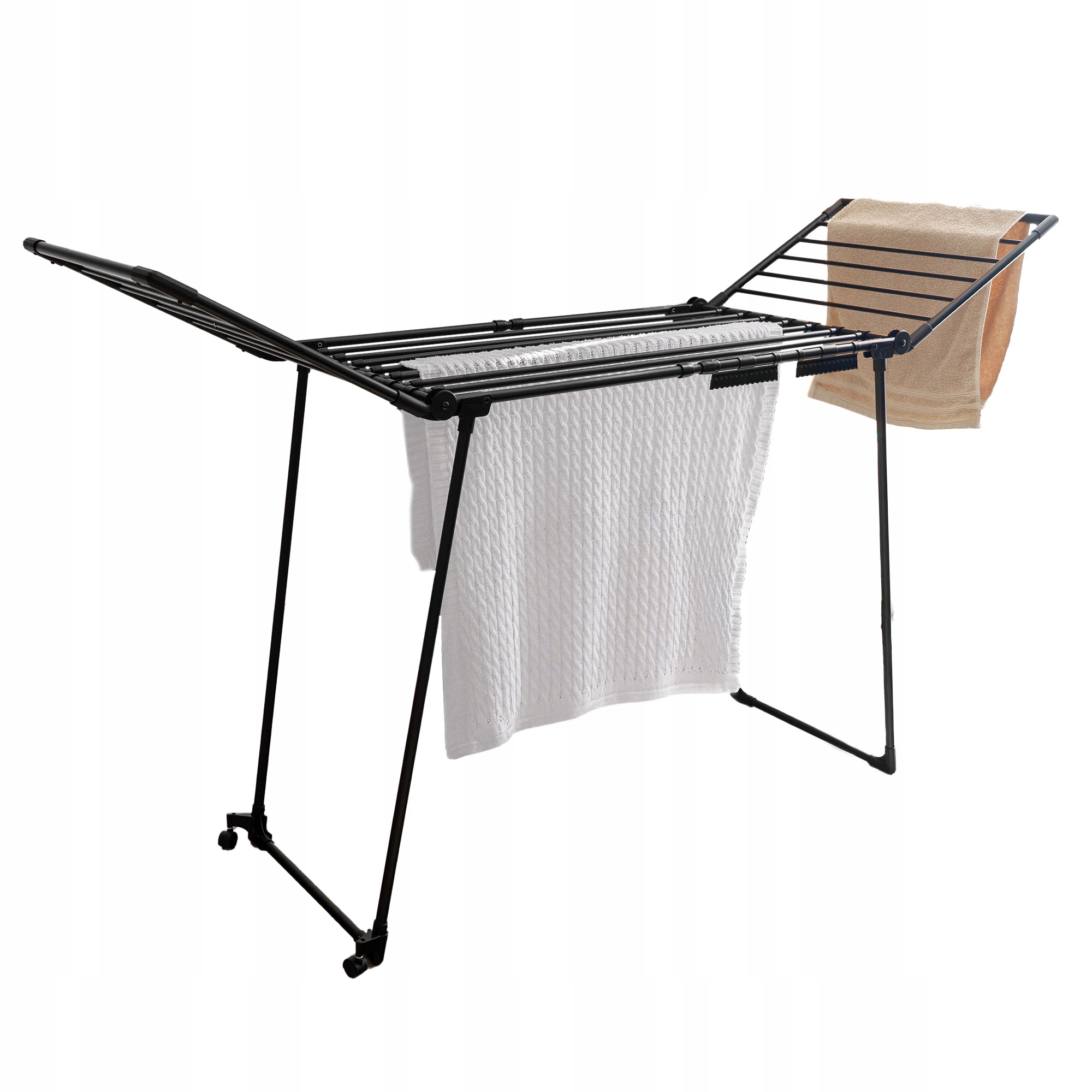 ✅ TRWAŁOŚĆ – Metalowa rama i mocne tworzywo sztuczne zapewniają stabilność oraz możliwość suszenia ciężkich tekstyliów.