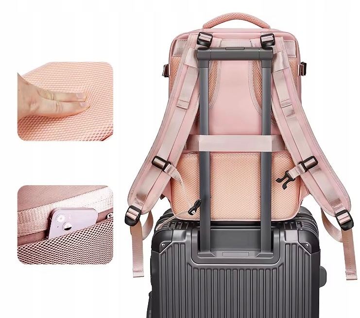 Czy plecak można przymocować do walizki? Tak, z tyłu znajduje się specjalny pasek, który umożliwia przymocowanie plecaka do rączki walizki.