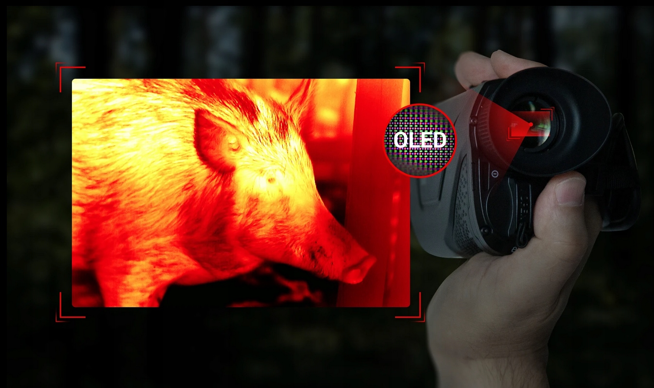Dzięki dużemu wyświetlaczowi OLED 0,41 cala o rozdzielczości 1440x1080 BlazeHunter oferuje dwukrotnie większą gęstość pikseli niż inne urządzenia, zapewniając wyraźny i ostry obraz, dając ci przewagę w każdej sytuacji.