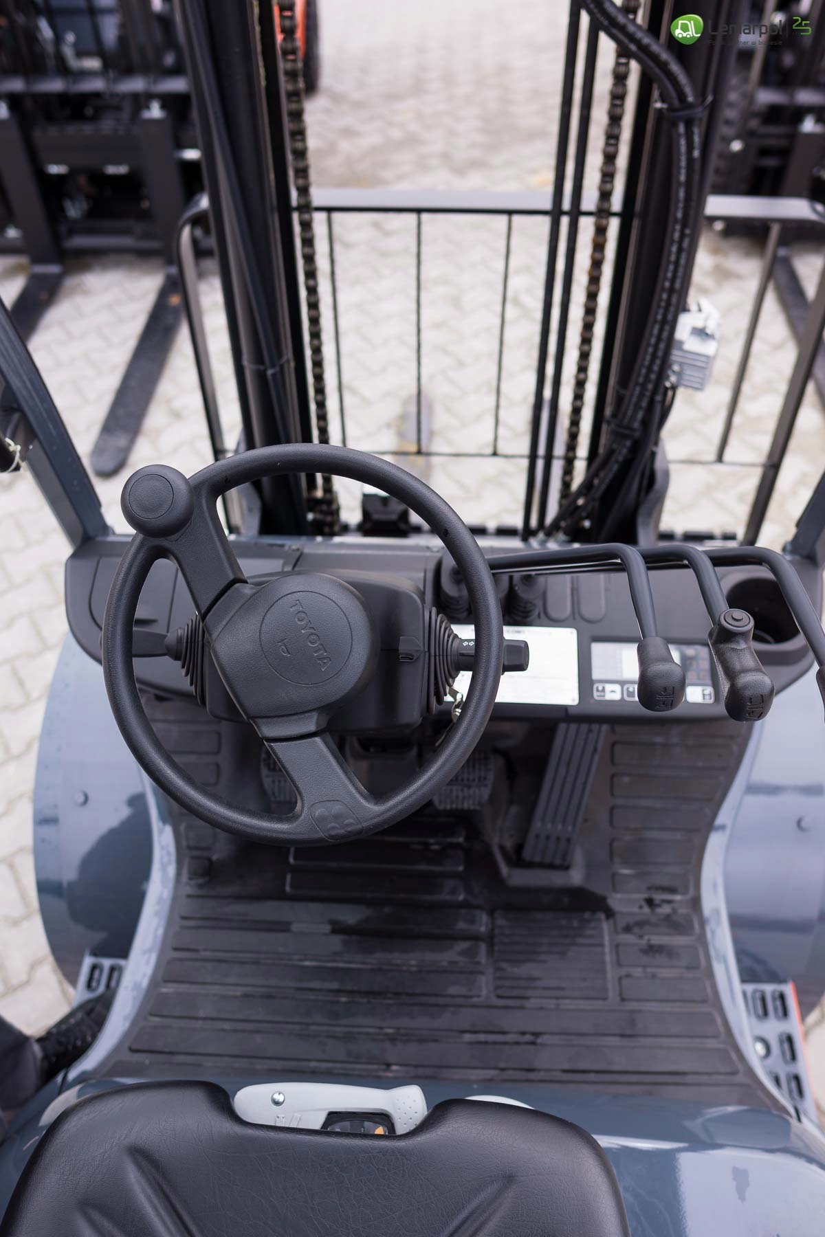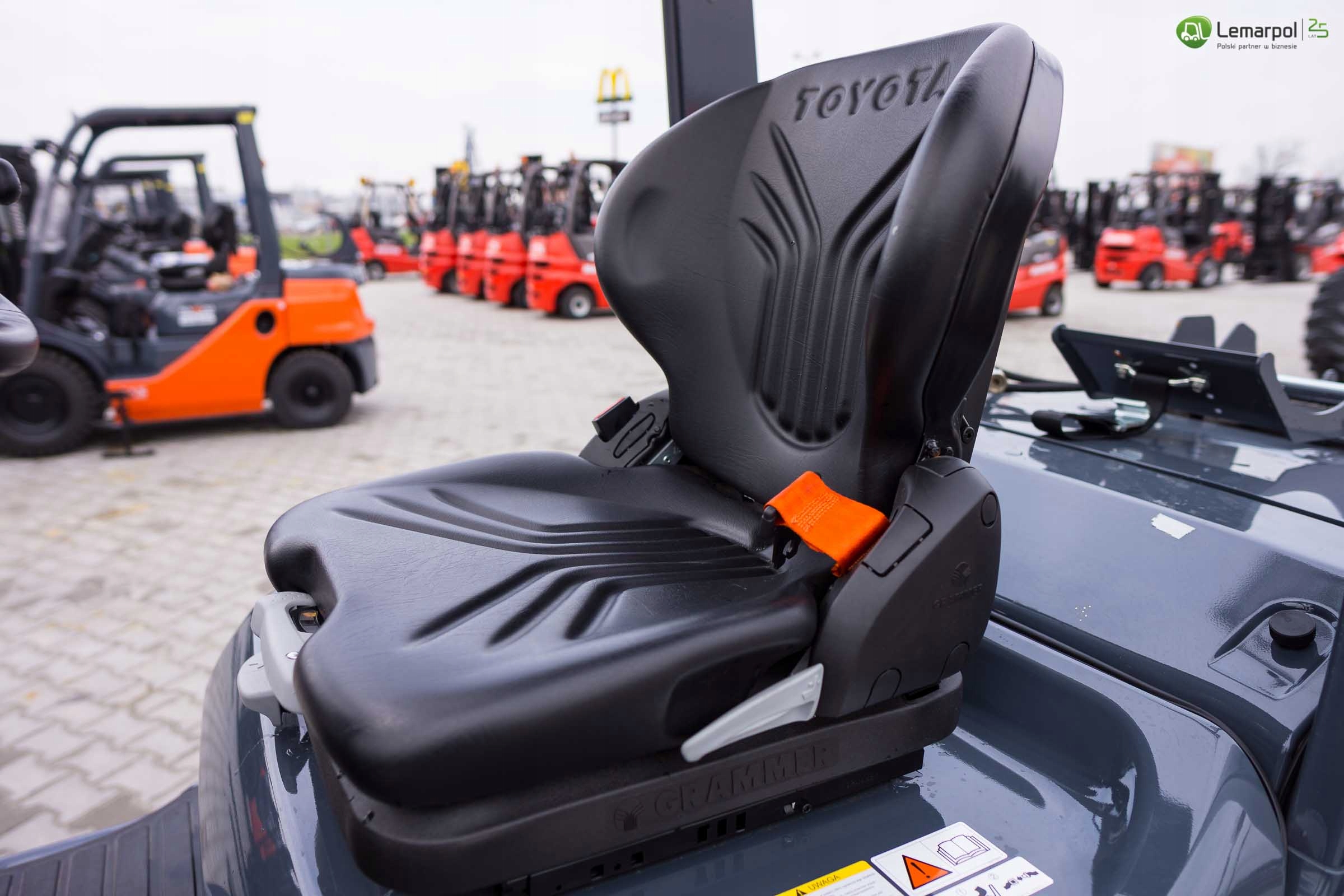 Toyota 8FGF30 to solidny wózek widłowy zasilany LPG o udźwigu 3000 kg, idealny do pracy w magazynach i na placach składowych. Wyposażony w niezawodny silnik Toyota 4Y oraz system SAS, zapewnia stabilność i bezpieczeństwo podczas operacji. Ergonomiczna kabina operatora oraz intuicyjne sterowanie zwiększają komfort użytkowania. Doskonały wybór dla firm szukających wydajnego i trwałego sprzętu!