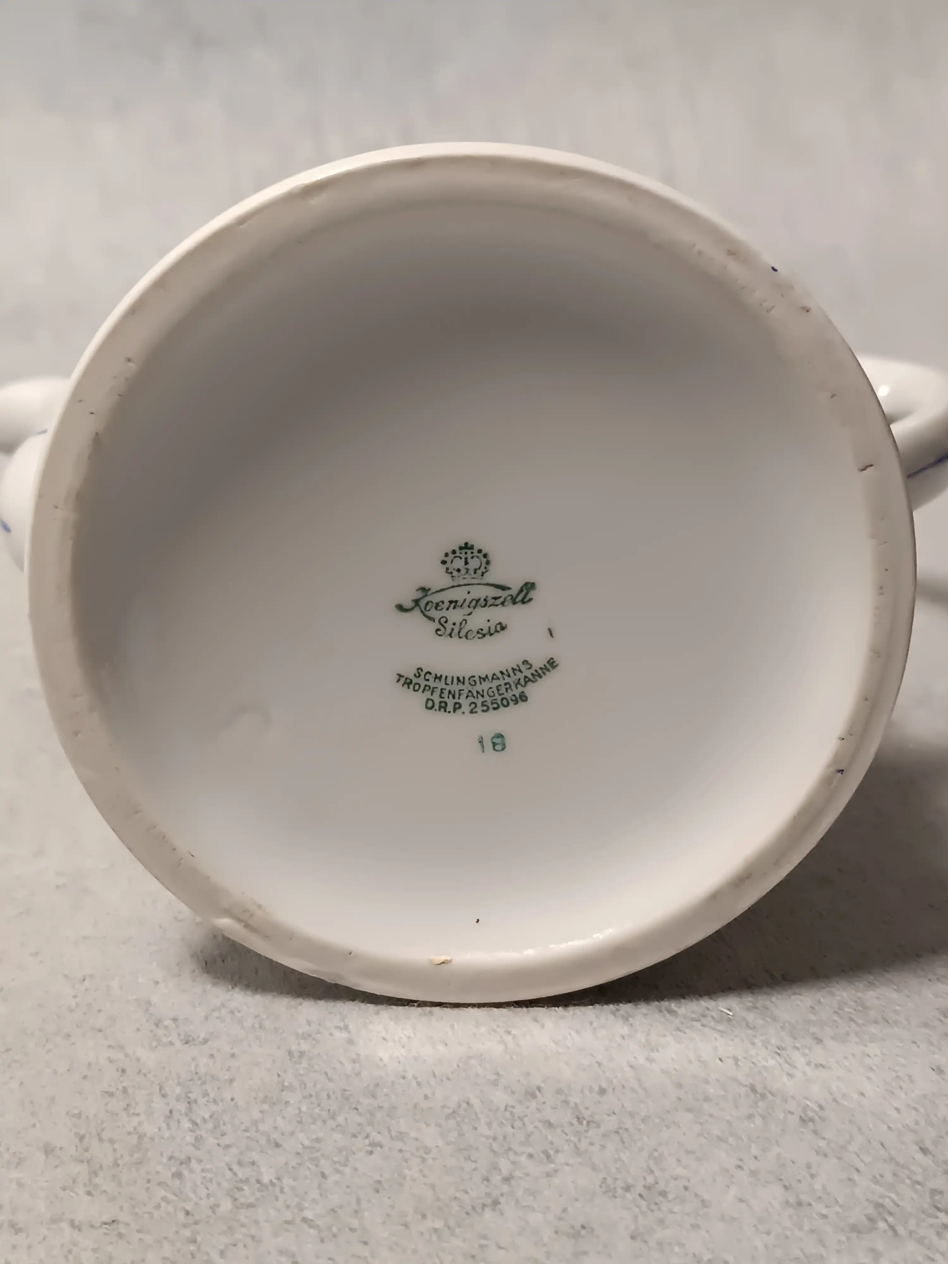 Przedstawiony dzbanek porcelanowy to klasyczny przykład wyrobów marki Koenigszelt Silesia Schlingmann.