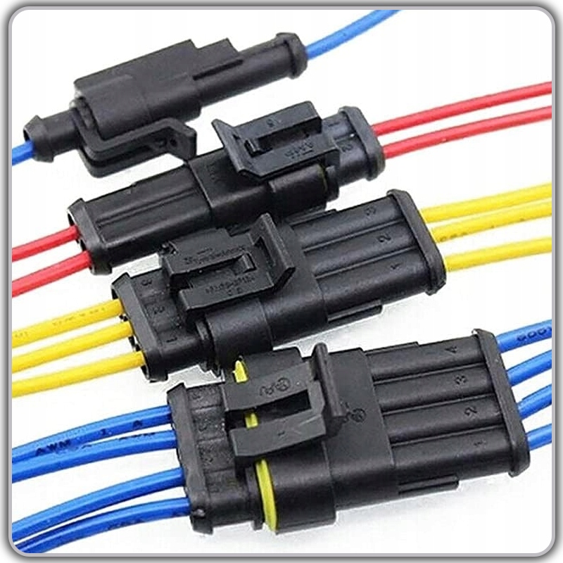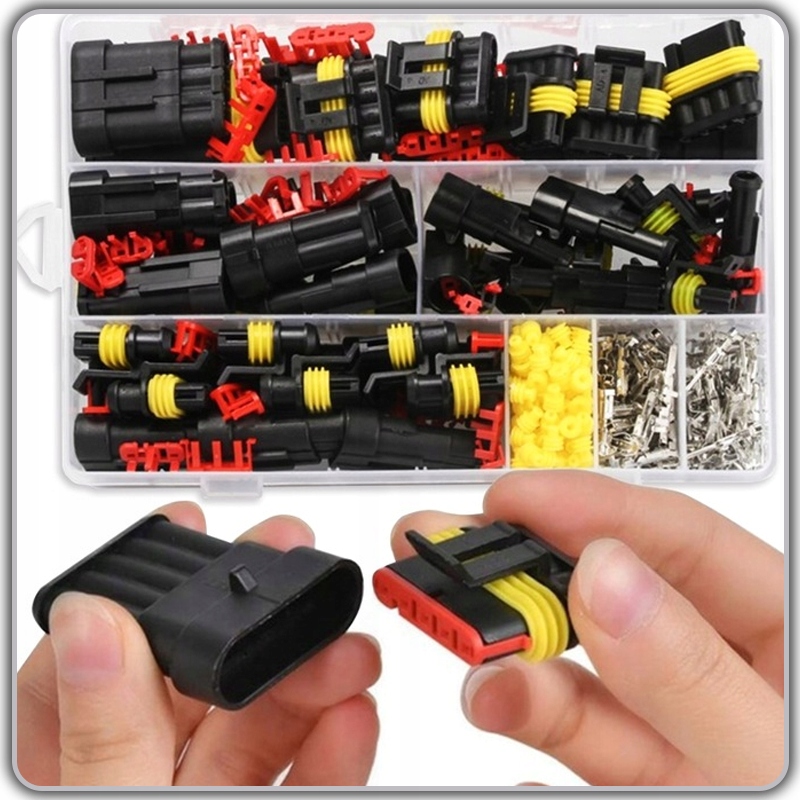 ⭐ Zestaw 352 sztuk złączek hermetycznych z przegródkami w różnych rozmiarach (1-4 pinowe) typu "superseal", wyposażonych w gumowe uszczelnienia zapewniające odporność na płyny hamulcowe, oleje i paliwa.