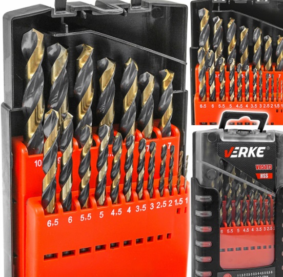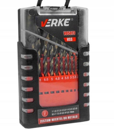 Zestaw wierteł VERKE składający się z wszystkich podręcznych 19 elementów umożliwi ci wykonywanie różnorodnych prac. W komplecie znajdują się wiertła do metalu.