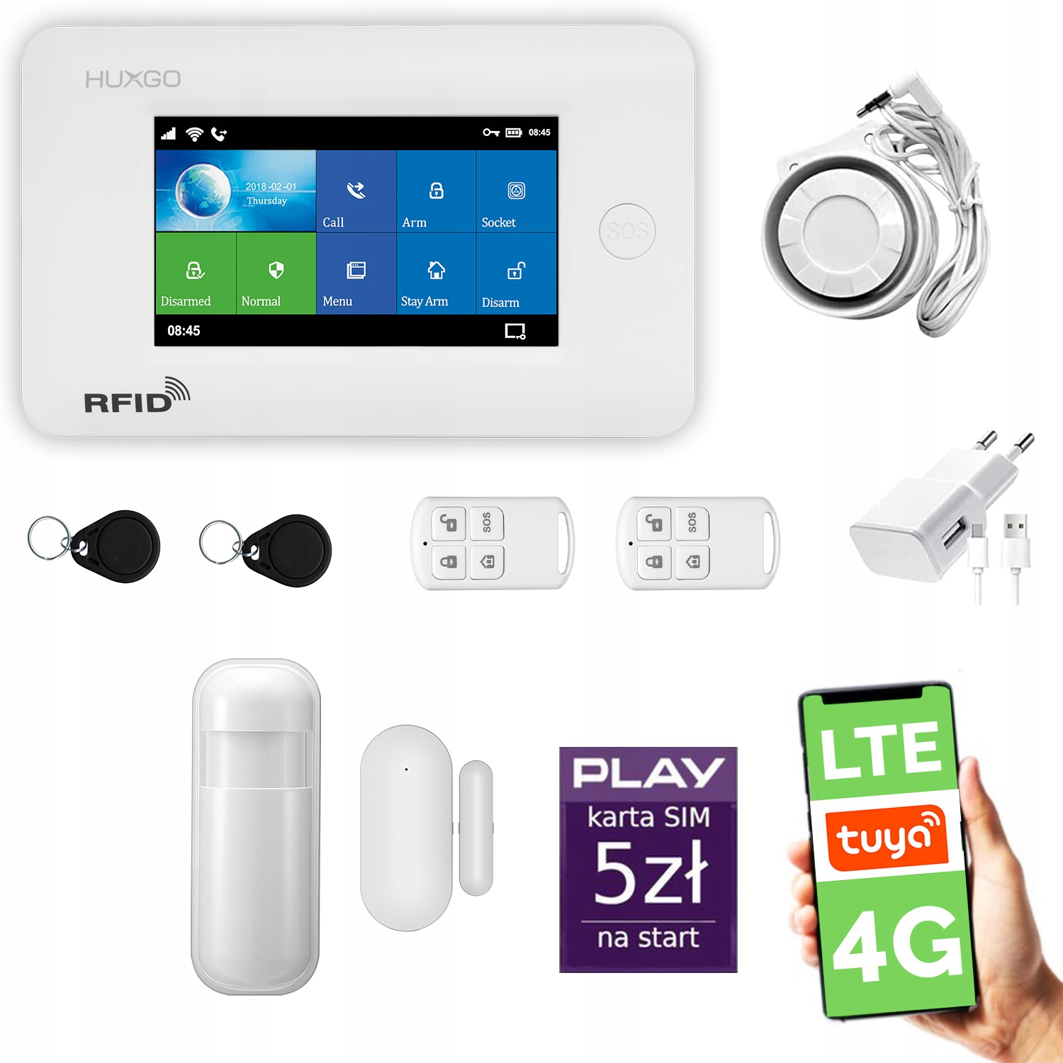 System alarmowy HUXGO HXA006 4G LTE możesz rozbudować o dodatkowe elementy, które pozwolą Ci odpowiednio zabezpieczyć Twój dom przed włamaniem, zalaniem, pożarem i wyciekiem gazu. Na naszych pozostałych aukcjach znajdziesz: czujnik zalania, kontaktrony - czujniki magnetyczne na drzwi i okna, czujniki ruchu PIR, czujniki dymu i temperatury (pożarowe), piloty, breloki RFID, syreny bezprzewodowe oraz czujniki ruchu odporne na zwierzęta.