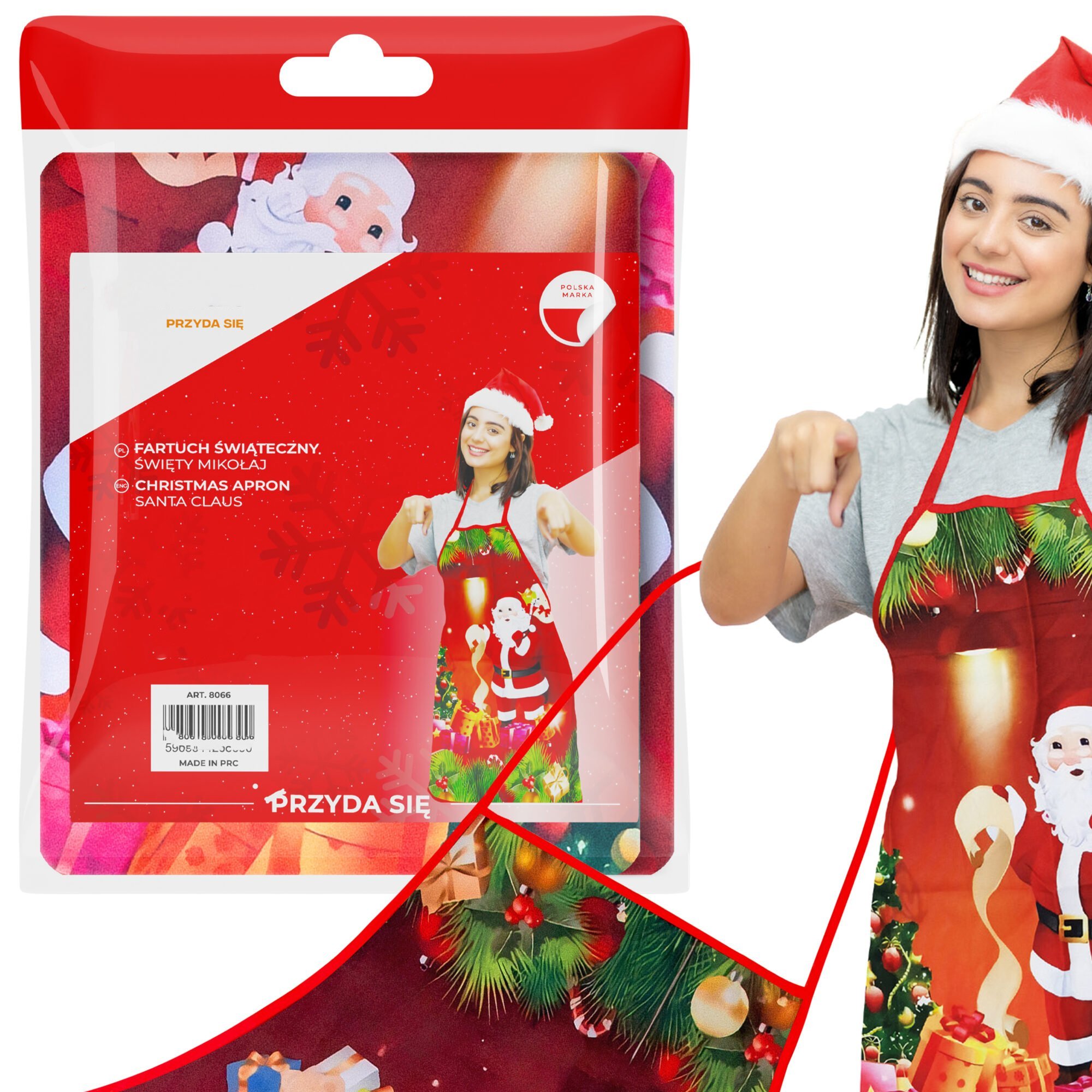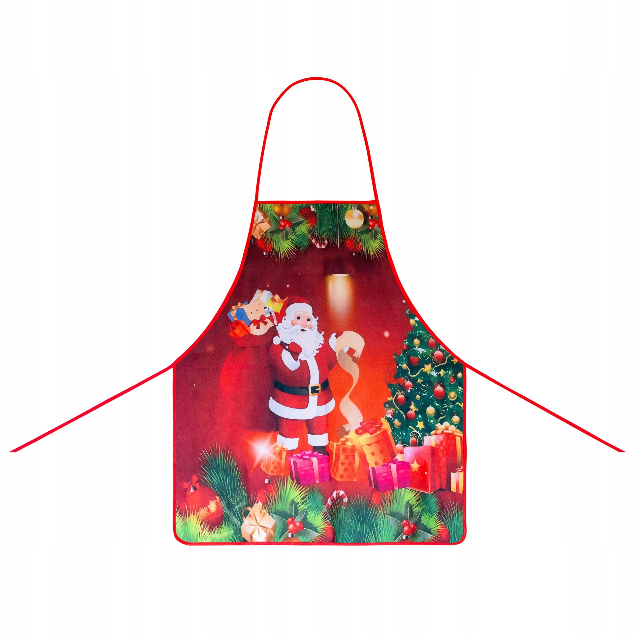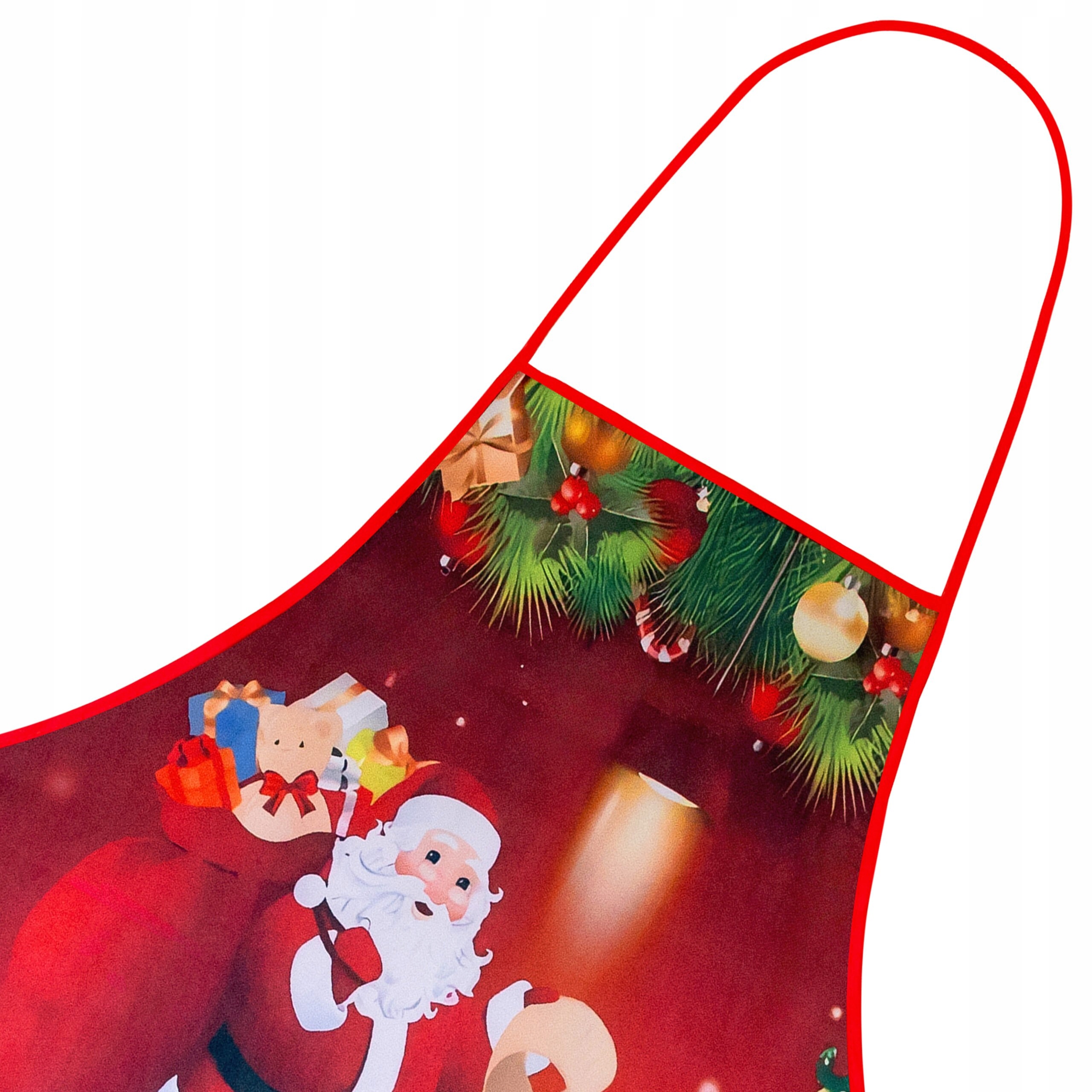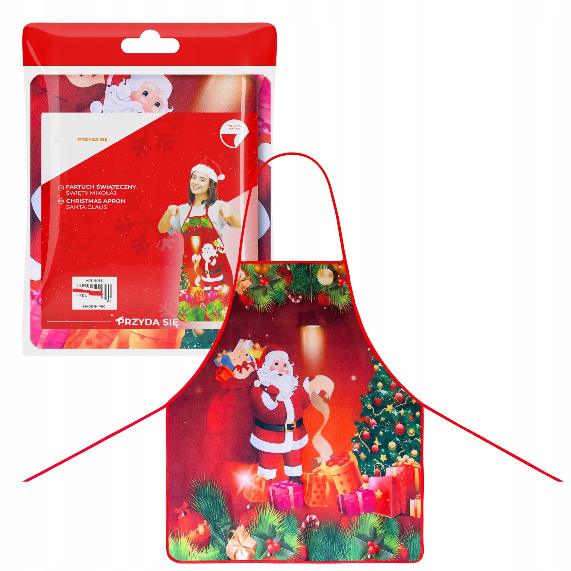 Wykonany z wysokiej jakości materiału, zapewnia komfort użytkowania i doskonałą ochronę ubrań przed zabrudzeniami. Dzięki przemyślanej konstrukcji i troczkom do wiązania przy szyi oraz po bokach, można go wygodnie dopasować do każdej sylwetki. Czerwona lamówka dodaje mu elegancji i doskonale podkreśla świąteczny charakter.