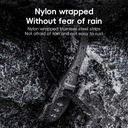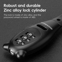Zamek wyposażony jest w solidny rdzeń ze stopu cynku, trwałą nylonową osłonę i wbudowany pasek ze stali nierdzewnej, dzięki czemu jest odporny na deszcz i zużycie, a także nie rdzewieje łatwo.
