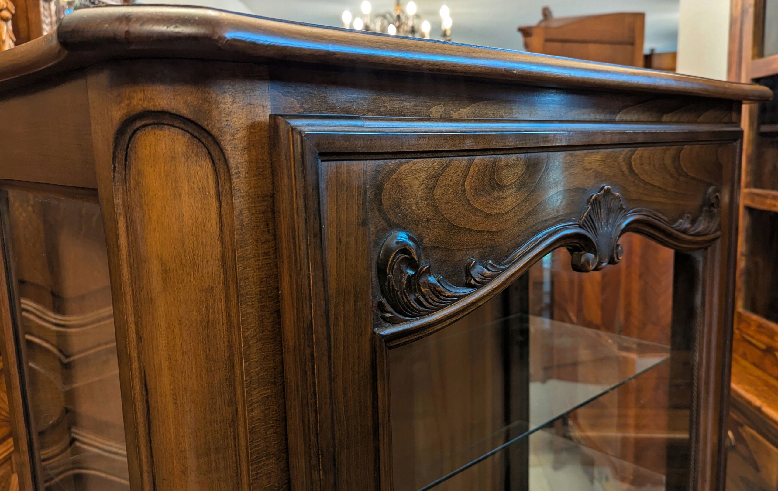 Zapraszam do obejrzenia pięknej orzechowej witryny,serwantki ludwikowskiej .Mebel jest bardzo pięknie zdobiony,ma wspaniale wymodelowane kształty.Stan bardzo dobry.Wszystko czyste i świeże, nie ma drewnojadów .Wymiary: szerokość na samej górze 82 cm., szerokość w środkowej i dolnej części 76,5 cm., głębokość 42 cm., wys. 150,5 cm. Pochodzi z Francji.