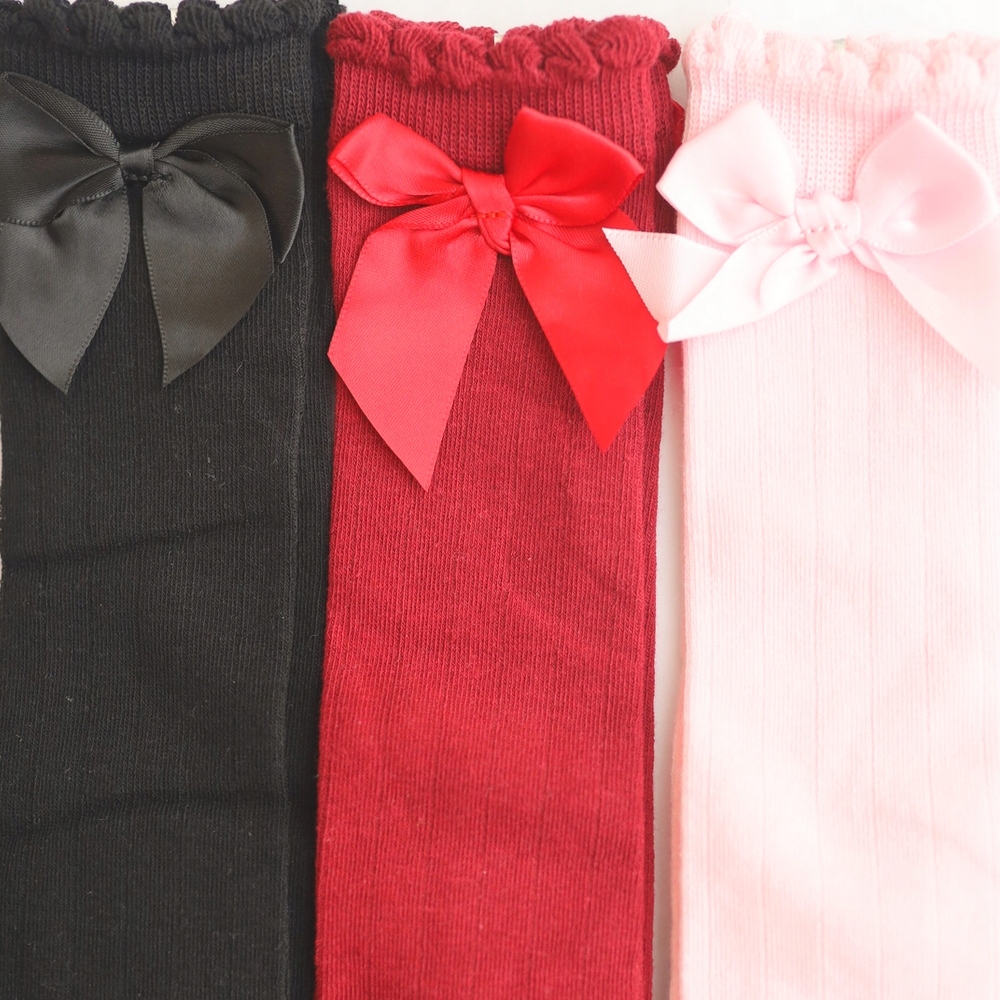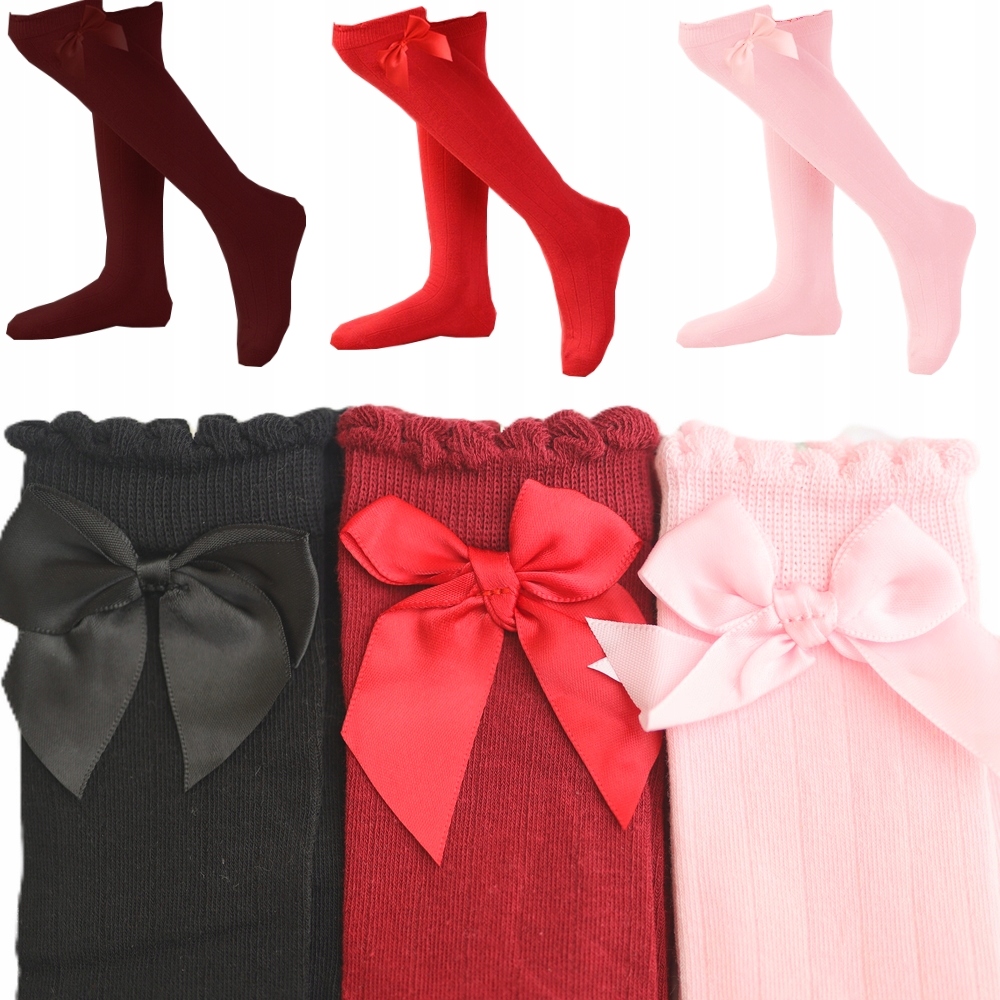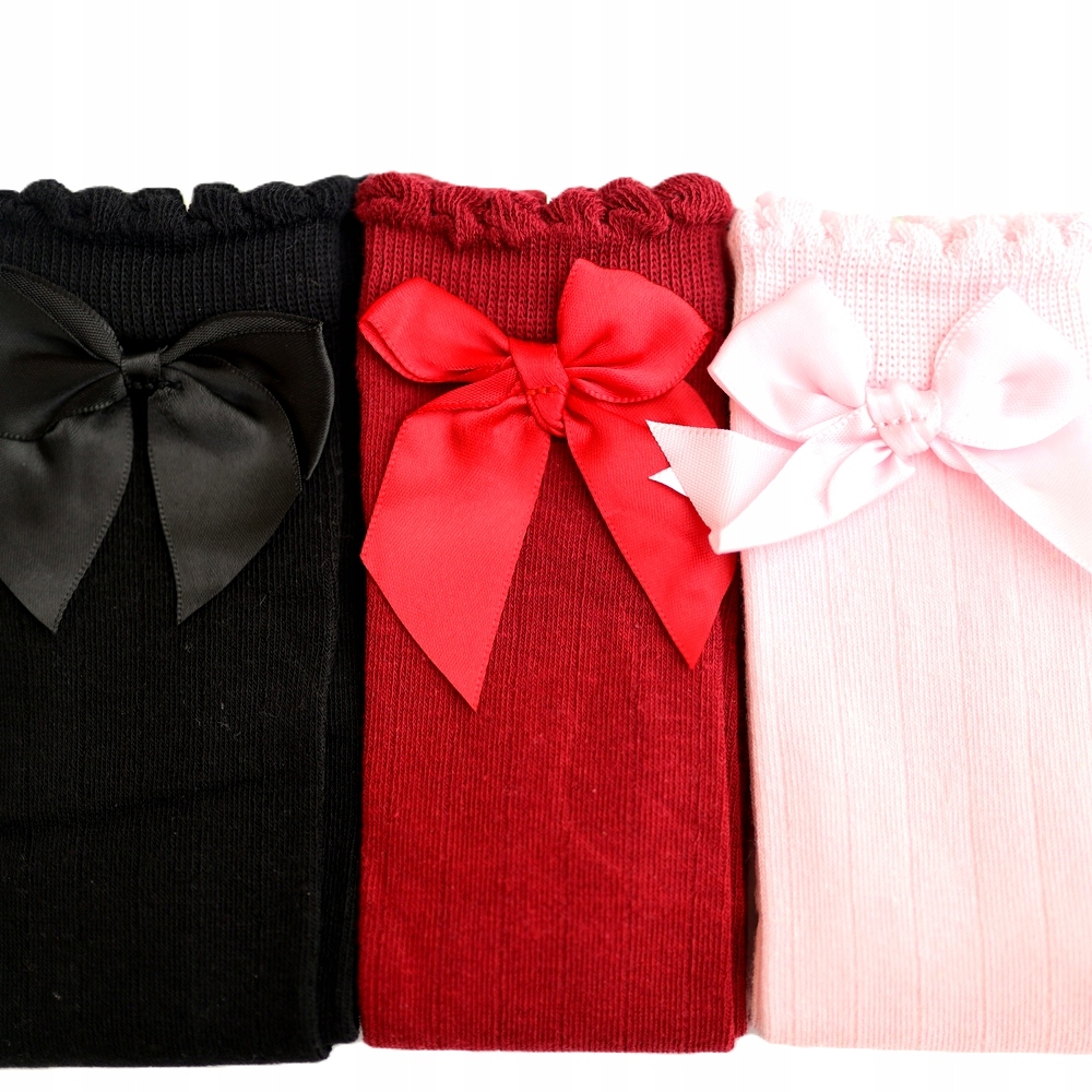 Stylowe podkolanówki dla dziewczynki z kokardą – 3-pak (3-5 lat)