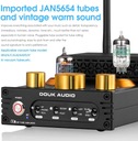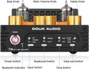 Douk Audio X1 wzmacniacz rurowy, wzmacniacz HiFi Bluetooth 5.0, GE5654 Valve Stereo Audio Amplifier, wzmacniacz audio MM, wzmacniacz fono, chip 160 W x 2 TDA7498E, pokrętło sterowania Treble & Bass