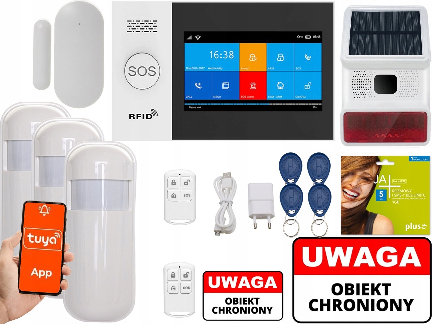 System alarmowy GSM można rozbrajać/uzbrajać przy pomocy klawiatury centrali alarmowej oraz małych, kompaktowych pilotów, kart RFID, aplikacji Smart Life na telefonie lub zdalnie za pomocą zwykłego połączenia telefonicznego.
