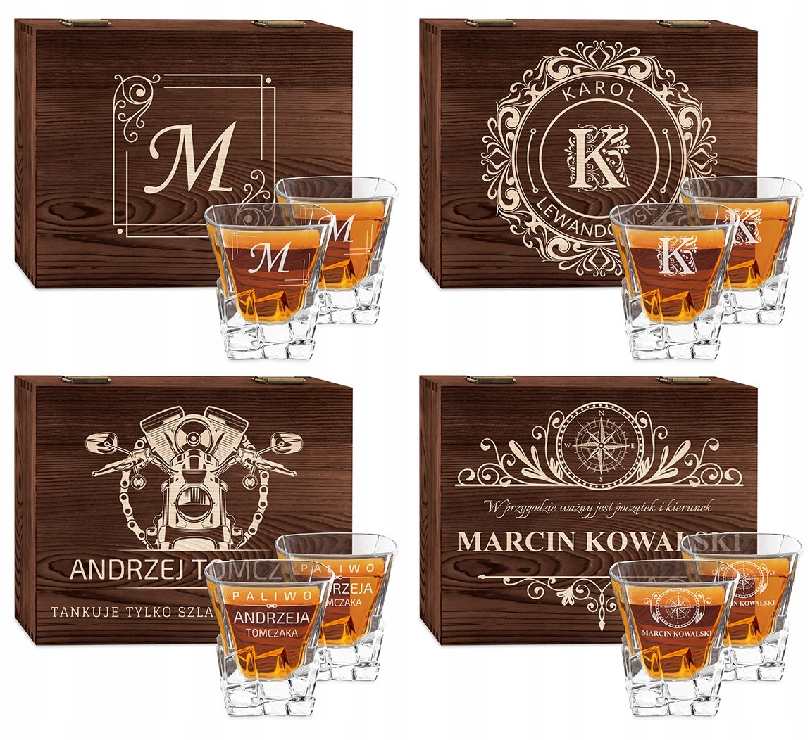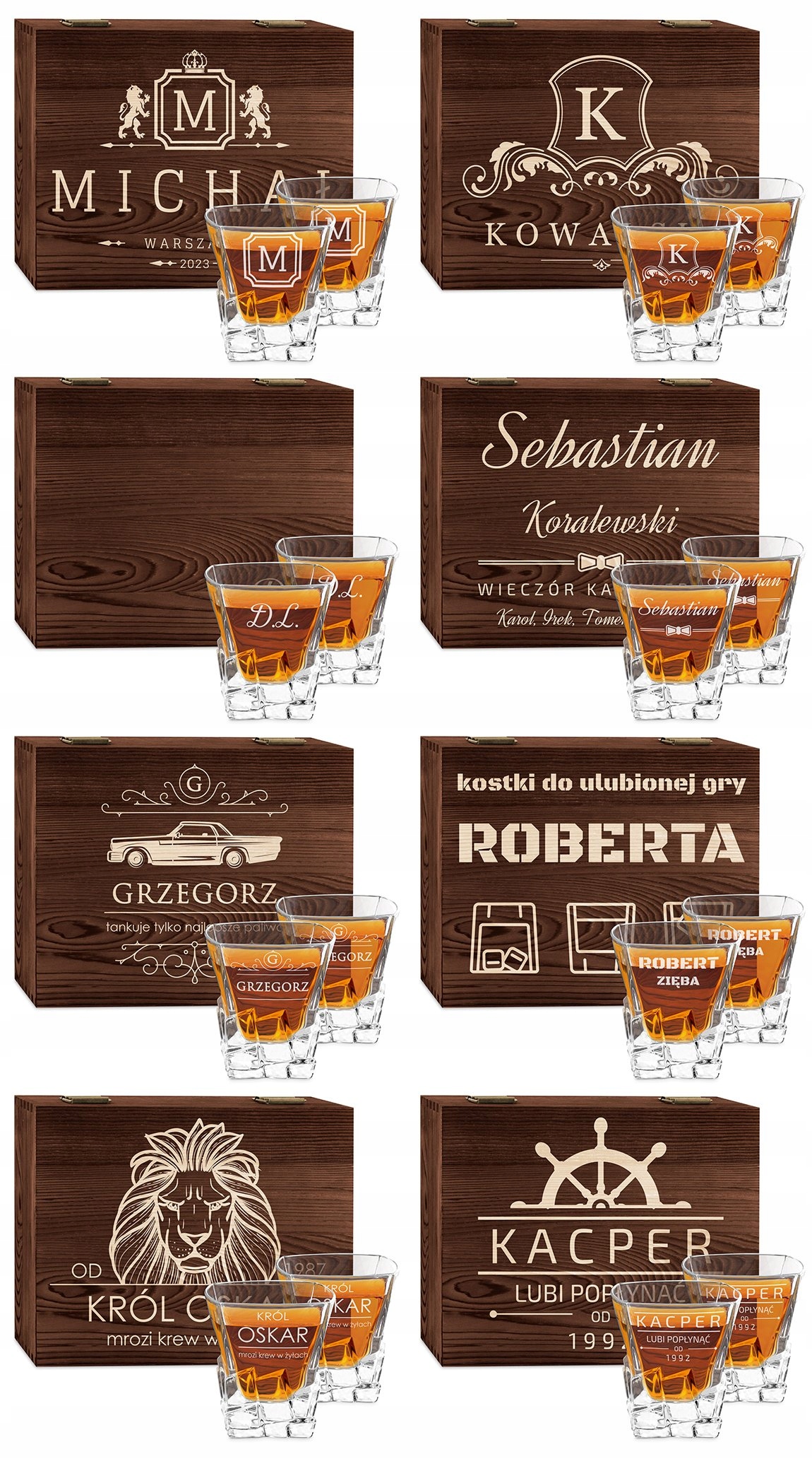 ✔️ Personalizacja: Możliwość graweru na szklankach i pudełku, dodaje zestawowi indywidualnego charakteru i jest to idealny prezent dla faceta, szwagra, kolegi, przyjaciela.