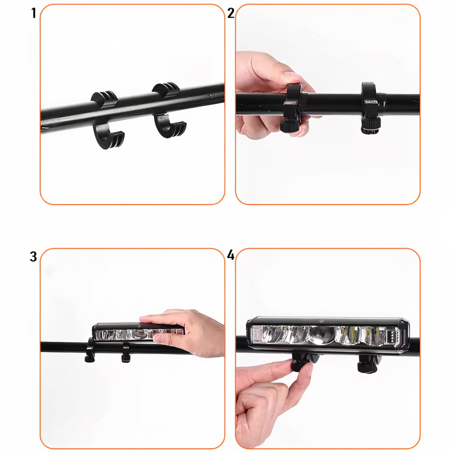 Uchwyt lampki EOS620 umożliwia montaż do każdej kierownicy. Istotne jest przy tym że lampka nie zajmuje miejsca na kierownicy. – Montaż jest niezwykle szybki, intuicyjny i prosty za pomocą uchwytu dołączonego do zestawu.