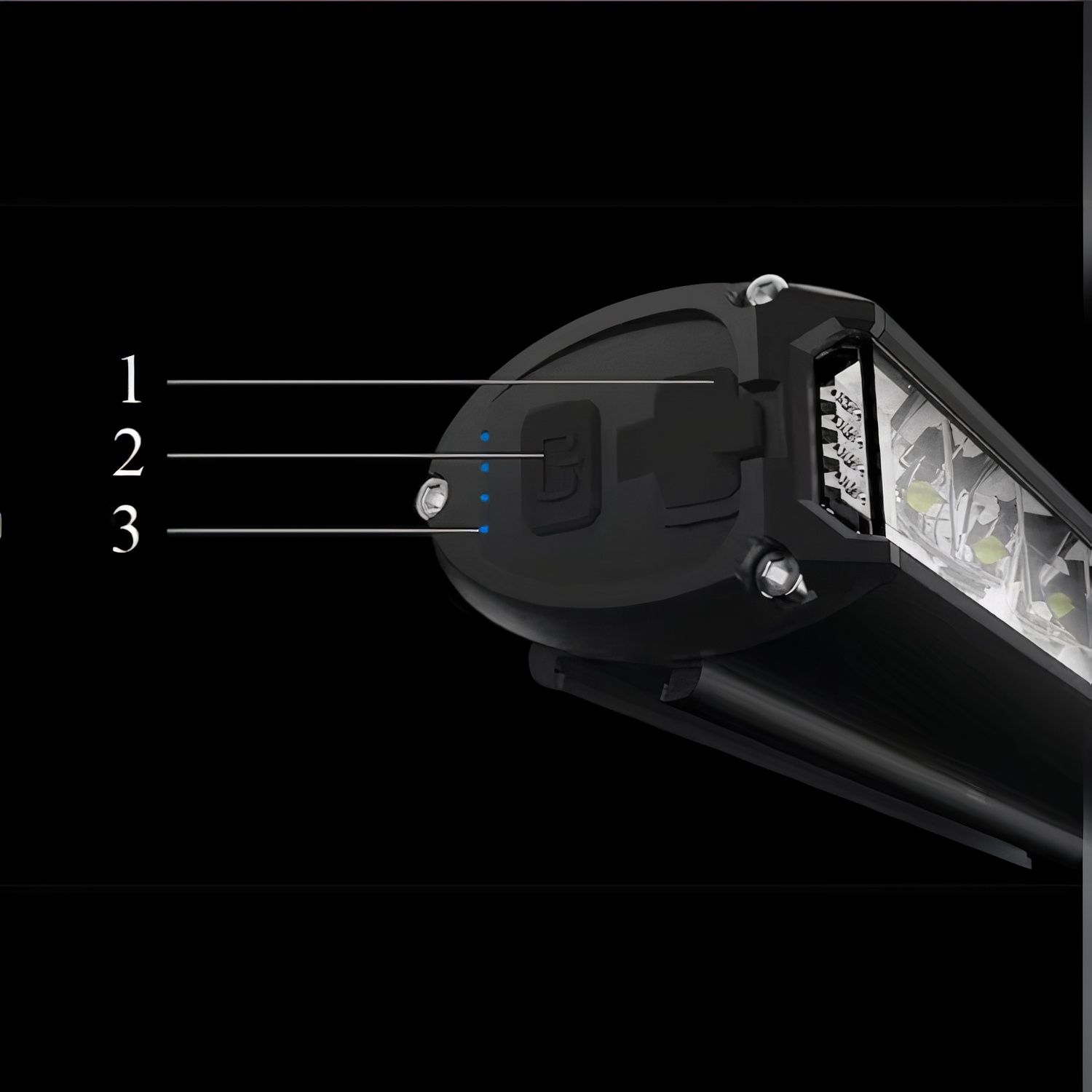 ◾Naciśnij włącznik aby włączyć pierwszy tryb mijania czyli zewnętrzne diody (nr2 na zdjęciu).