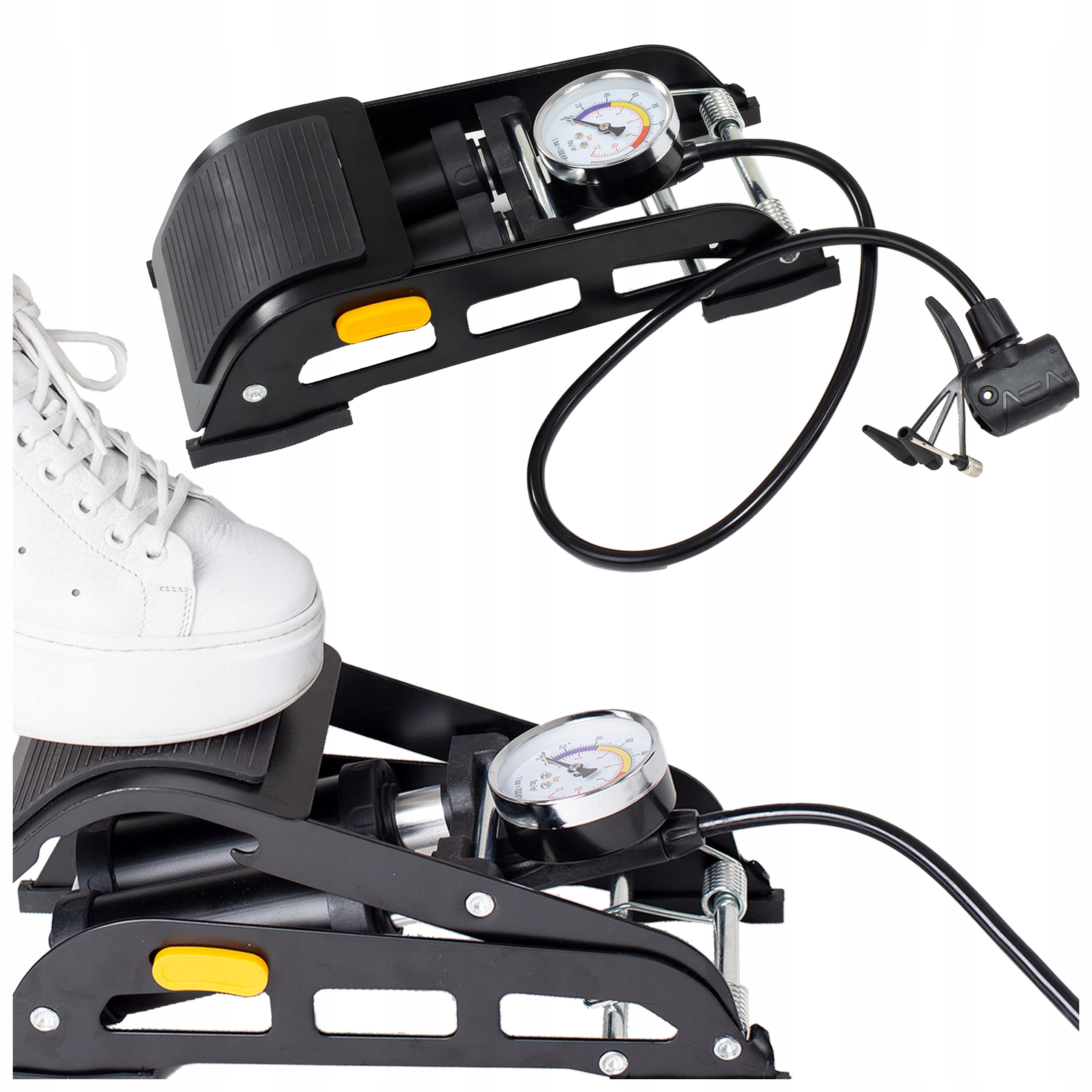 Zainwestuj w naszą pompkę nożną wysokociśnieniową i ciesz się bezproblemowym i szybkim napompowaniem opon zawsze, gdy tego potrzebujesz!