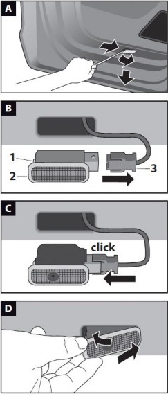 Montaż lampek jest na tyle łatwy że można go przeprowadzić samemu. Do wymiany lampek LED LOGO wystarczy śrubokręt płaski lub łapka do podważenia lampki