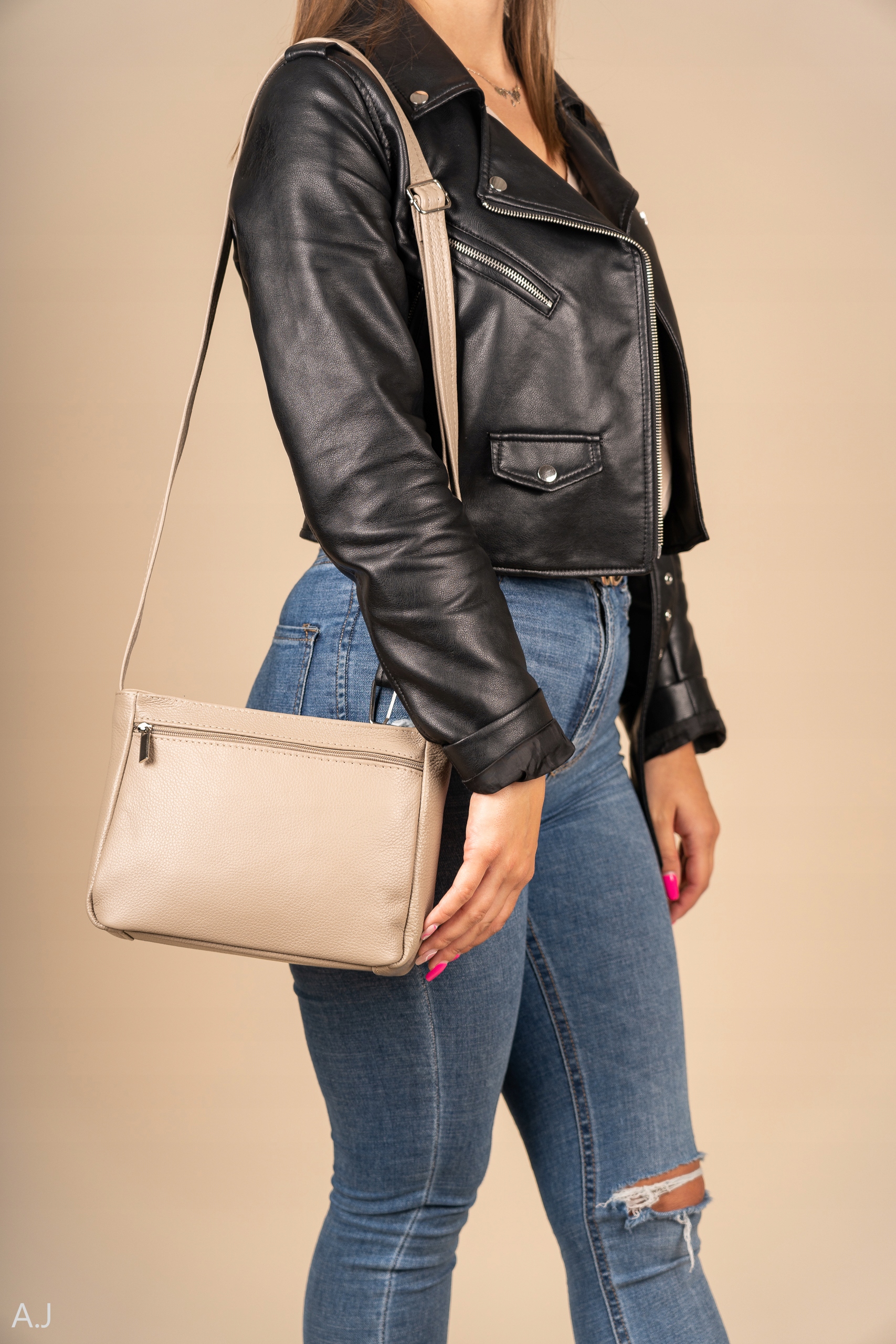 TOREBKA NA DŁUGIM SKÓRZANYM PASKU. POSIADA JEDNĄ KOMORĘ , TRZY KIESZONKI ZAMYKANE SUWAKAMI ORAZ KIESZONKĘ NA TELEFON .
