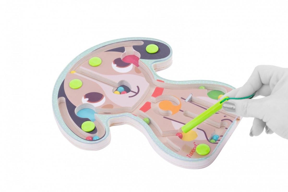 Wiele możliwości przesuwania i dopasowywania kulek magnetycznym rysikiem, sprawi że uwaga dziecka będzie na długo skupiona na tym drewnianym labiryncie. Odnoszenie sukcesów podczas zabawy, wpłynie na chęć powrotu dziecka do zabawki.