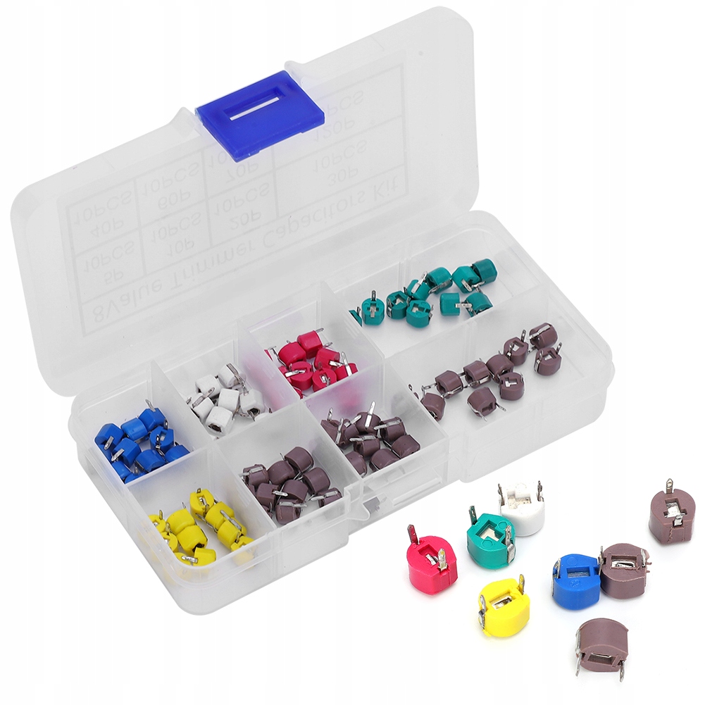 80szt. 6mm kondensator trymerowy 5/10/20/30/40/60/70/120P zestaw kondensatorów elektronicznych