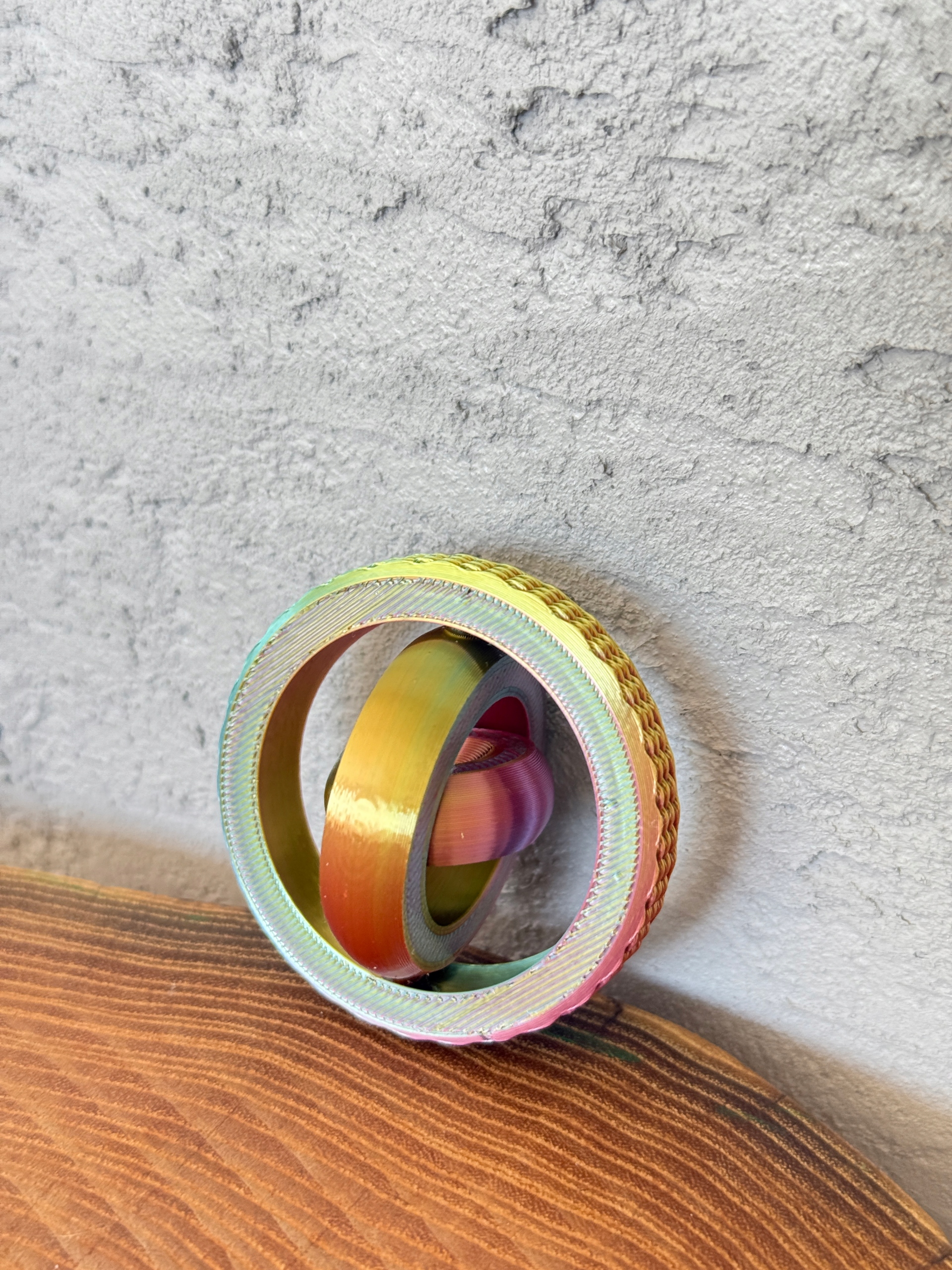 Żyroskop ( Fidget Toy ) to zabawka antystresowa, która służy do zajmowania rąk i redukcji napięcia. Jest to gadżet składający się z 3 ruchomych pierścieni, które obracamy rękami (lub jedną ręka).