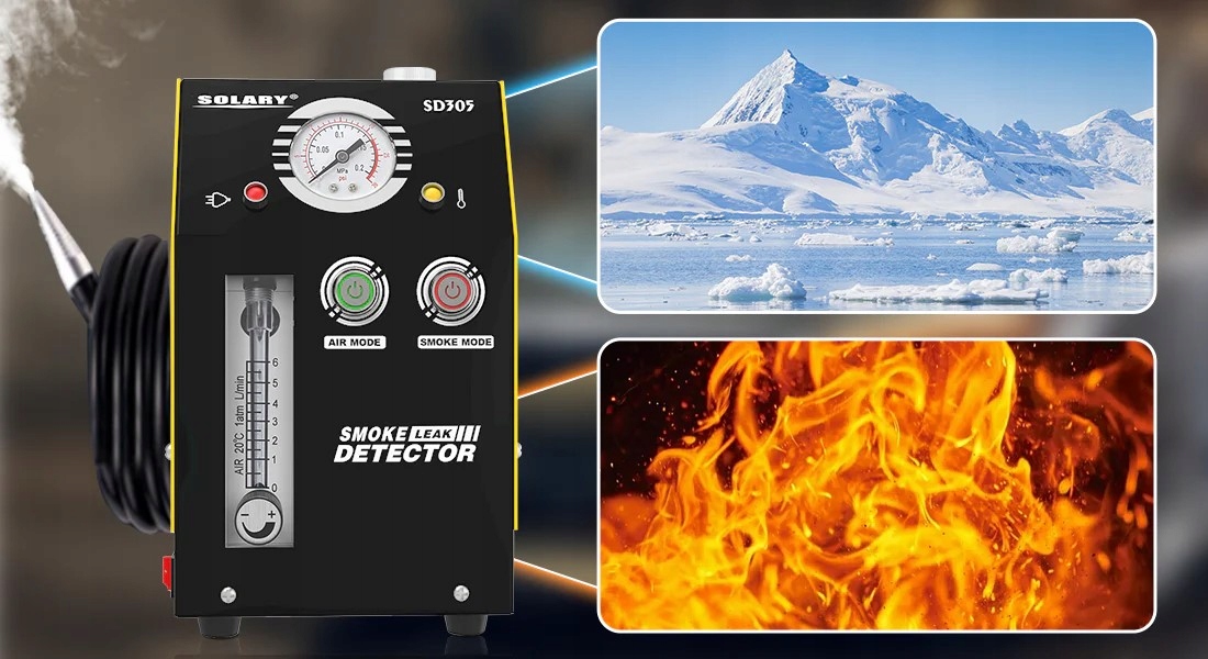 SOLARY SD305 to innowacyjne urządzenie badające szczelność różnych układów. Za pomocą wytwarzanego dymu, który zostaje wprowadzony np. w układ dolotowy silnika samochodu oraz ma za jego pomocą wykryć nawet mikro nieszczelności które będą powodowały np. utratę mocy silnika. Przeznaczony wszędzie tam gdzie potrzeba jest sprawdzić szczelność zamkniętych układów np. przewody paliwowe, układy dolotowe, zbiorniki itp. znajdując tym samym szerokie zastosowanie w sektorze motoryzacyjnym oraz przemysłowym.