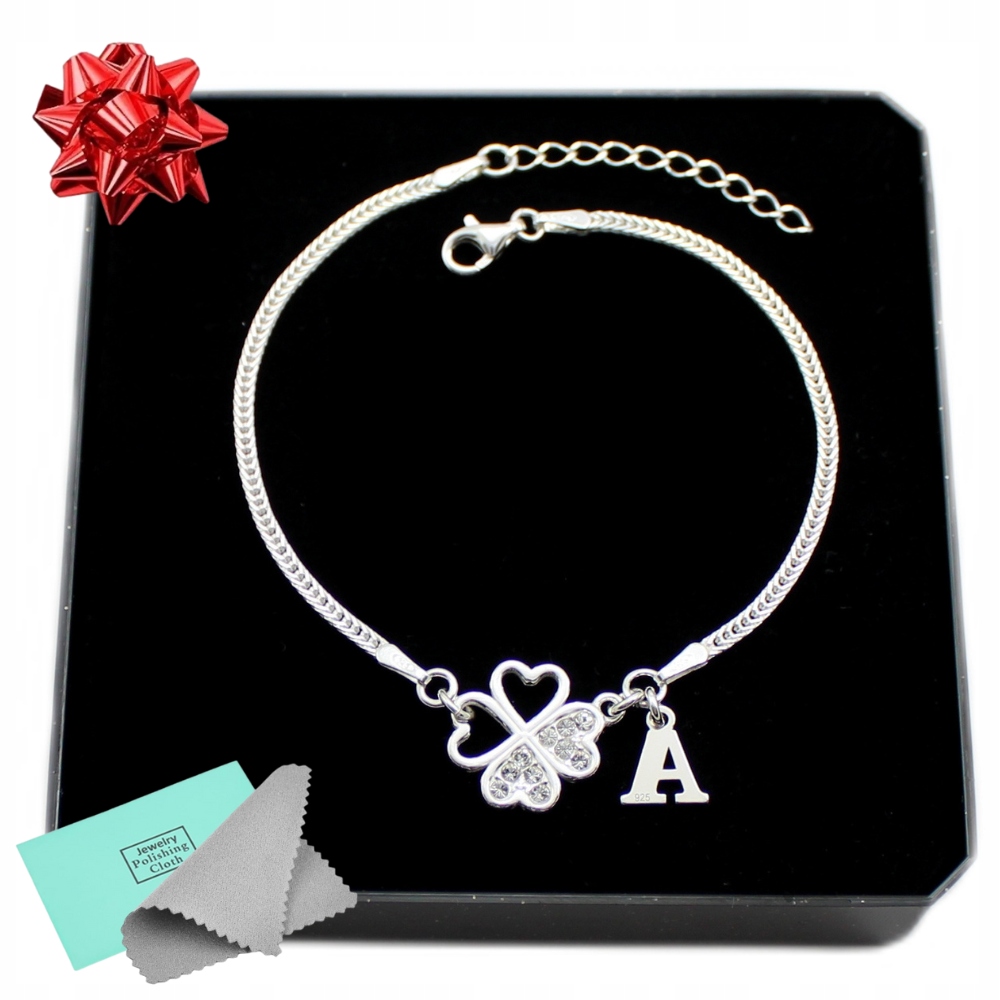➡️ Bransoletka z koniczynką i cyrkoniami to wyjątkowa biżuteria, który łączy w sobie elegancję srebra oraz symbolikę szczęścia, zawartą w zawieszce czterolistna koniczynka. Dodatkowa literka, która może być inicjałem ważnej dla nas osoby, powoduje, że biżuteria staje się bardzo spersonalizowanym podarunkiem.