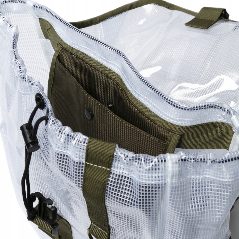 plecak • pojemność do 25 l • futerał Polaroid • wewnętrzna kieszeń do zawieszenia • kieszenie boczne • piankowe paski • zapięcie na klips • górne zapięcie na sznurek • regulowane paski • materiał: 100% ripstop PVC • kolor: przezroczysty • D × × D: 450 × 460 × 50 mm
