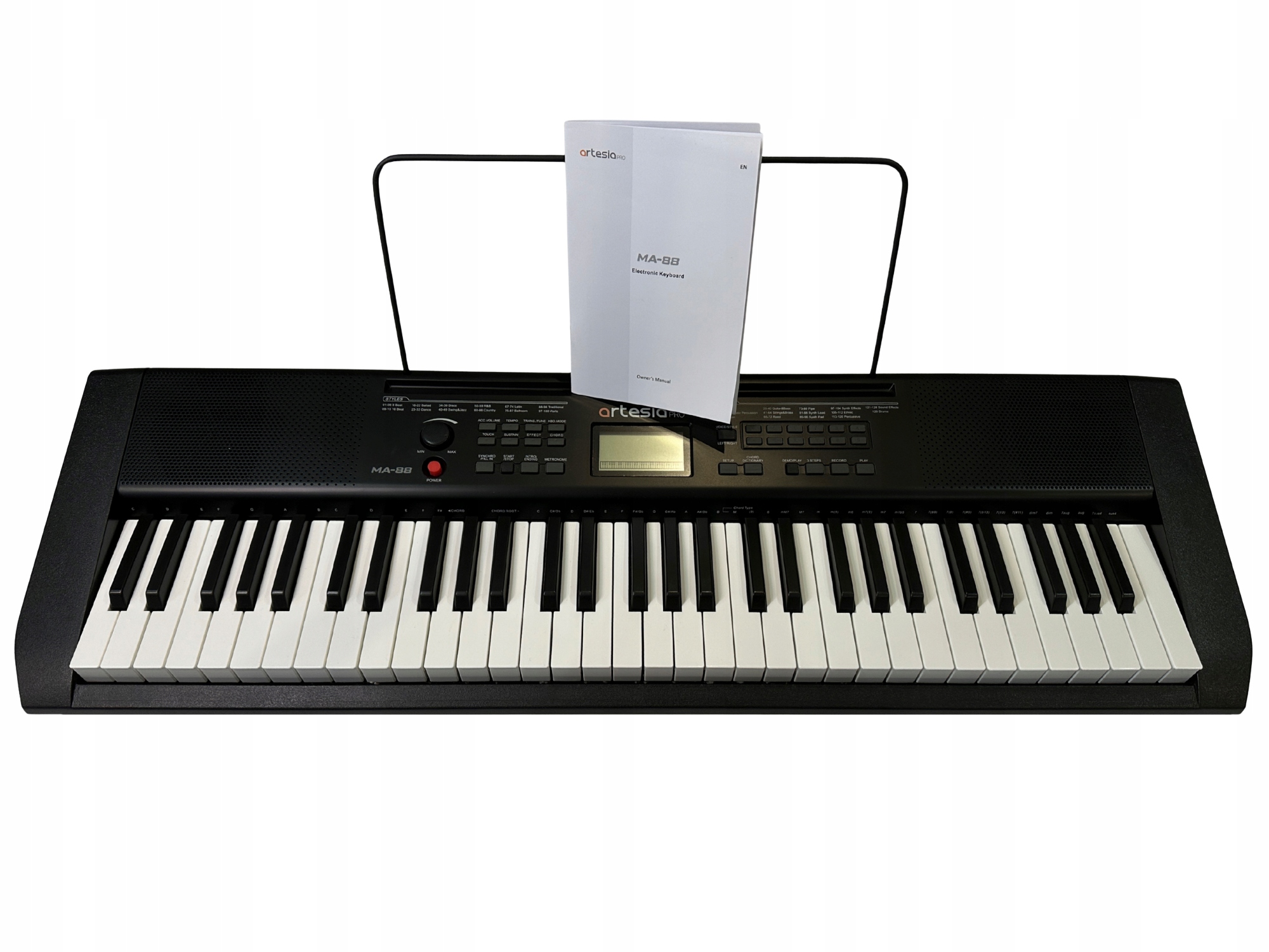 Artesia MA-88 łączy łatwość obsługi z szerokim zakresem brzmień dzięki silnikowi PCM i efektom cyfrowym (Reverb i Chorus). Dostępnych jest 129 barw instrumentów, 32-głosowa polifonia oraz pełna sekcja stylów rytmicznych (100 presetów). To wszystko pozwala tworzyć aranżacje pełne energii i realizmu.