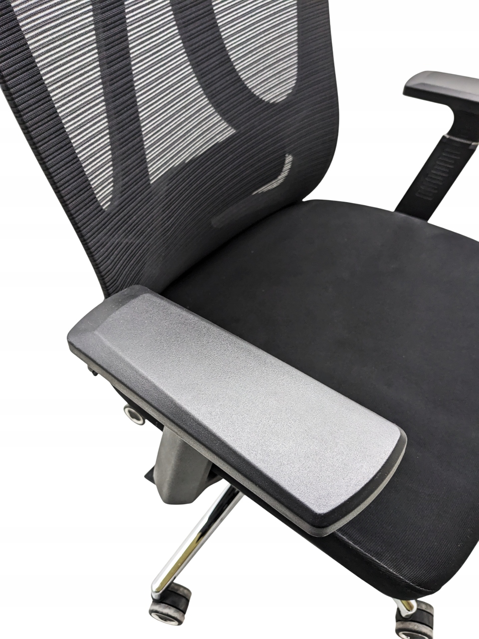 Fotel obrotowy marki REZINO wyposażony jest w szerokie i regulowane podłokietniki. Posiadają one szeroką płaszczyznę oraz wygodny profil, dzięki czemu pozwalają na komfortowe ułożenie przedramion. Funkcja regulacji pozwala na zmianę ustawienia w zasięgu aż 7 cm (góra-dół). Podłokietniki powinny być regulowane pod kątem wysokości, aby zapewnić odpowiednie podparcie dla ramion i zapobiec nadmiernemu napięciu mięśni w obrębie ramion i barków.