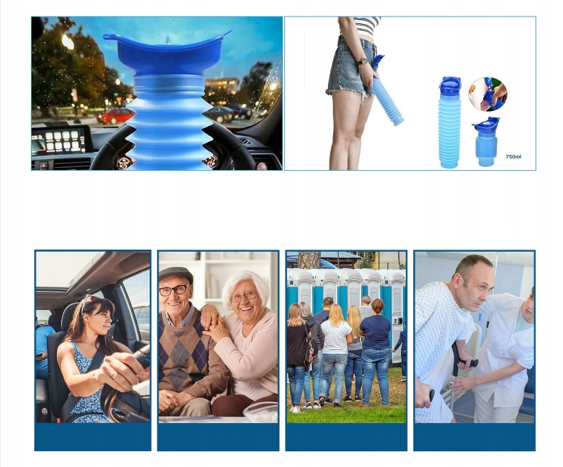 • Duża pojemność 750ml zaspokaja potrzeby osób dorosłych na jednorazowe użycie (około 2-3 oddawanie moczu), korpus garnka waży zaledwie 200g, a po złożeniu jest wielkości kubka termosowego, a do tego nie zajmuje miejsca do przechowywania w samochodzie.