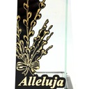 Podstawka oraz kapturek wykonany z plastiku w kolorze złotym, aplikacja złote bazie, napis "Alleluja"