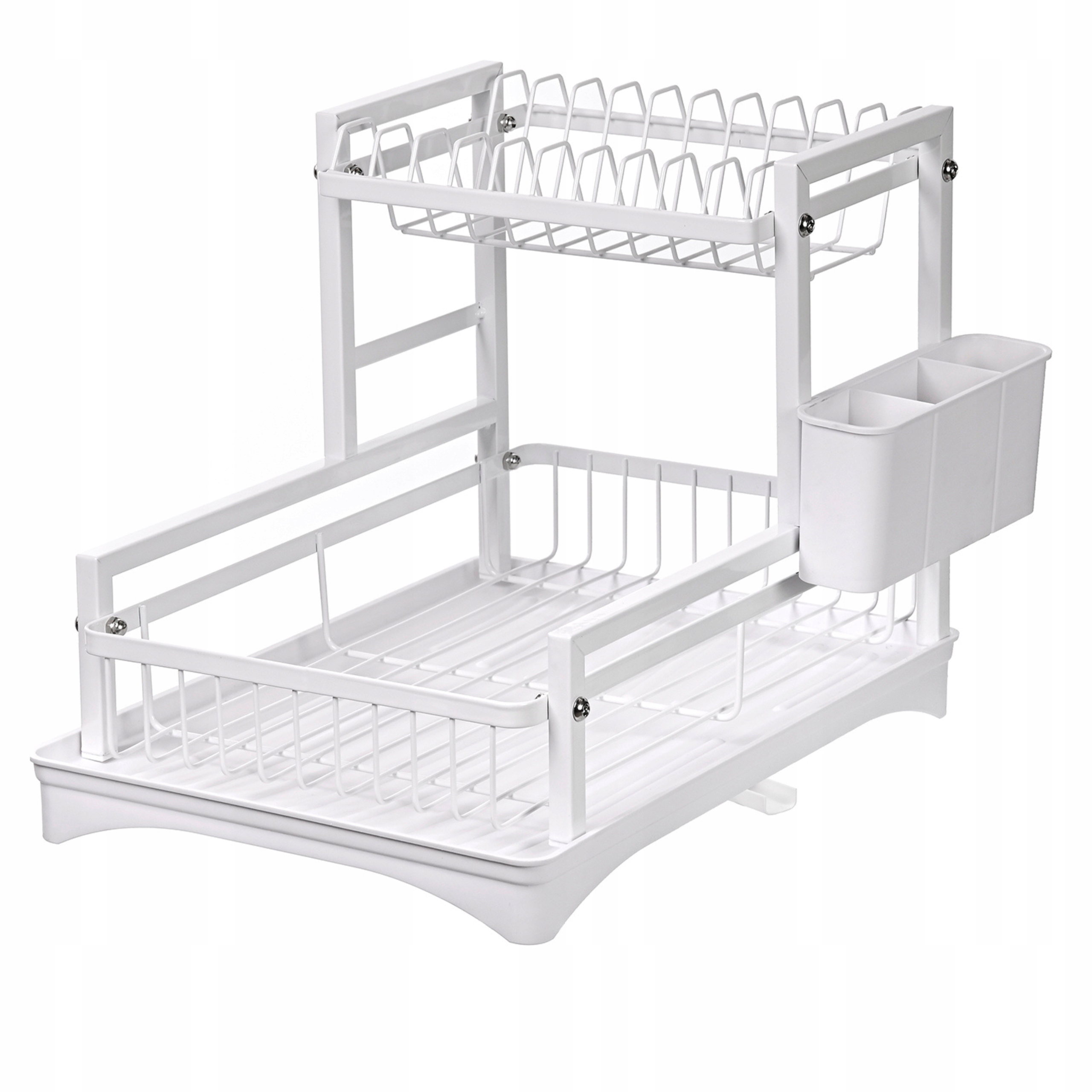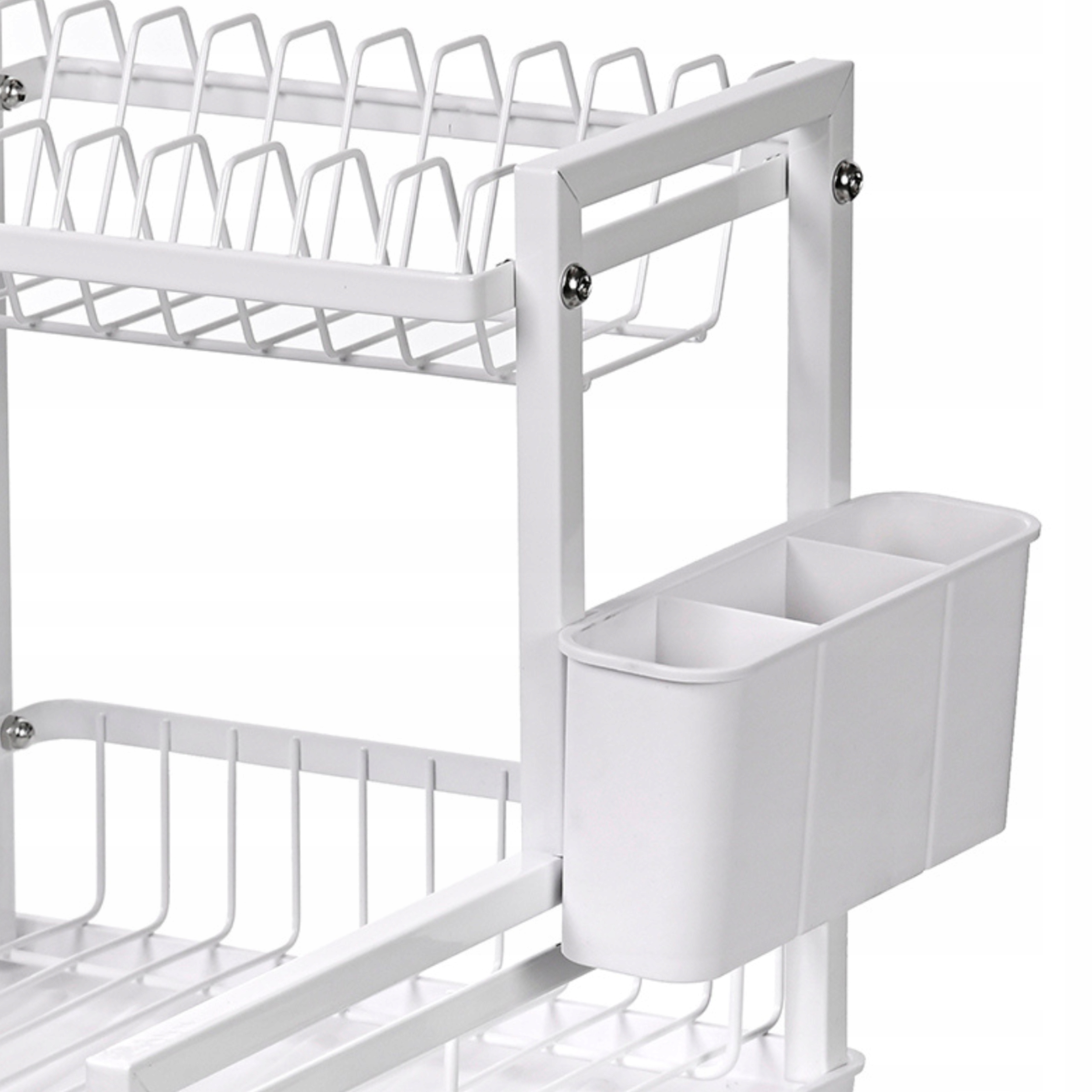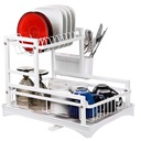 Nowoczesna suszarka do naczyń z ociekaczem i odpływem to praktyczne rozwiązanie do każdej kuchni. Dwupoziomowa konstrukcja pozwala na przechowywanie większej ilości naczyń, a system odprowadzania wody zapobiega gromadzeniu się wilgoci na blacie. Solidna, malowana proszkowo stal zapewnia trwałość i odporność na rdzę. Dodatkowy uchwyt na sztućce zwiększa funkcjonalność. Minimalistyczny design doskonale komponuje się z nowoczesnymi wnętrzami.