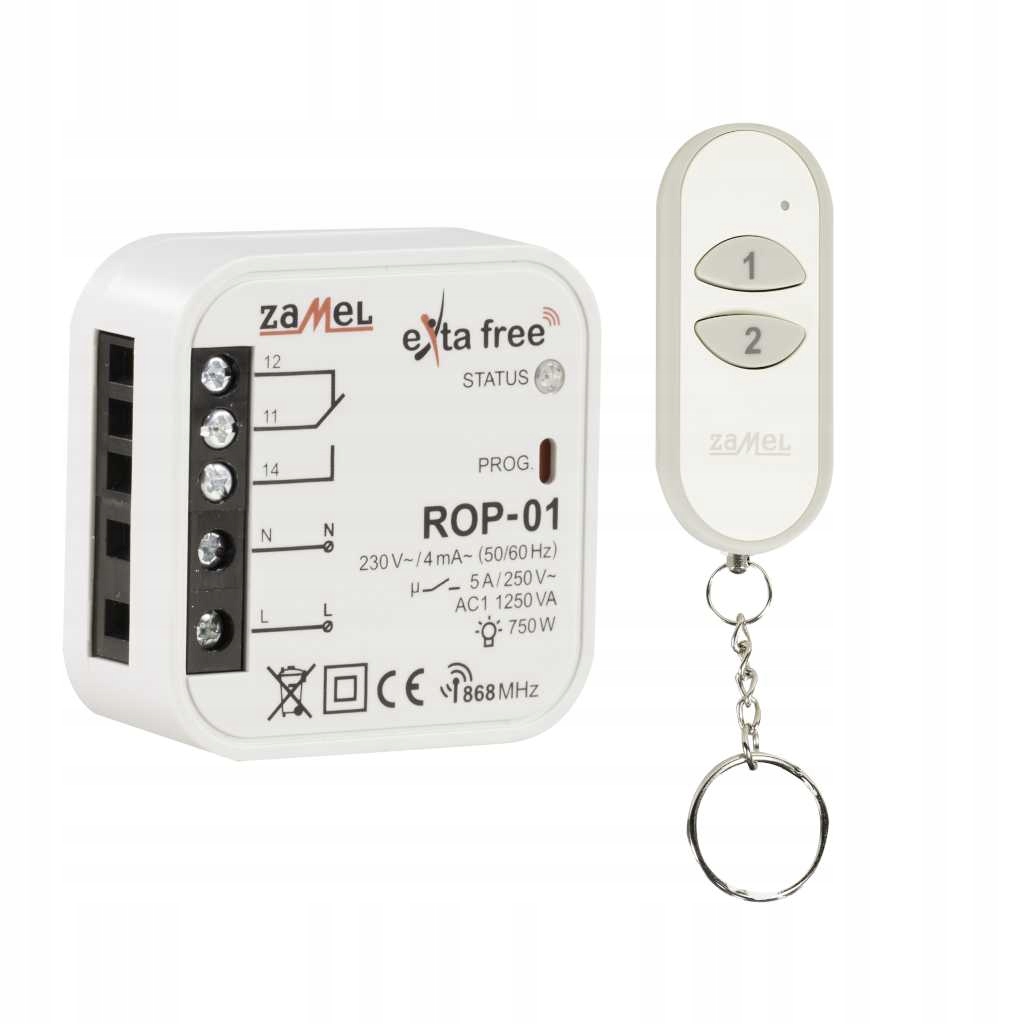 Radiowe odbiorniki dopuszkowe znajdują zastosowanie zarówno jako elementy do montażu w puszkach instalacyjnych pod- i natynkowych, jak i jako urządzenia wykonawcze zabudowywane bezpośrednio w obudowach opraw oświetleniowych i innych odbiorników. ROP-01 umożliwia pracę w 5 różnych trybach (załączenie, wyłączenie, tryb monostabilny, bistabilny, czasowy).