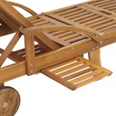 Drewniany leżak ogrodowy służący również jako fotel lub krzesło. Leżak ogrodowy Tami Sun z kołami, z możliwością regulacji oparcia i podnóżka. Leżak można łatwo złożyć i schować tak aby nie zajmował dużo miejsca.