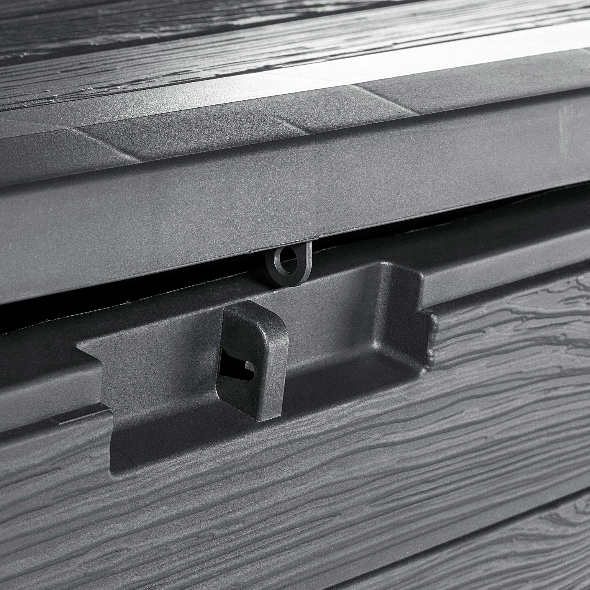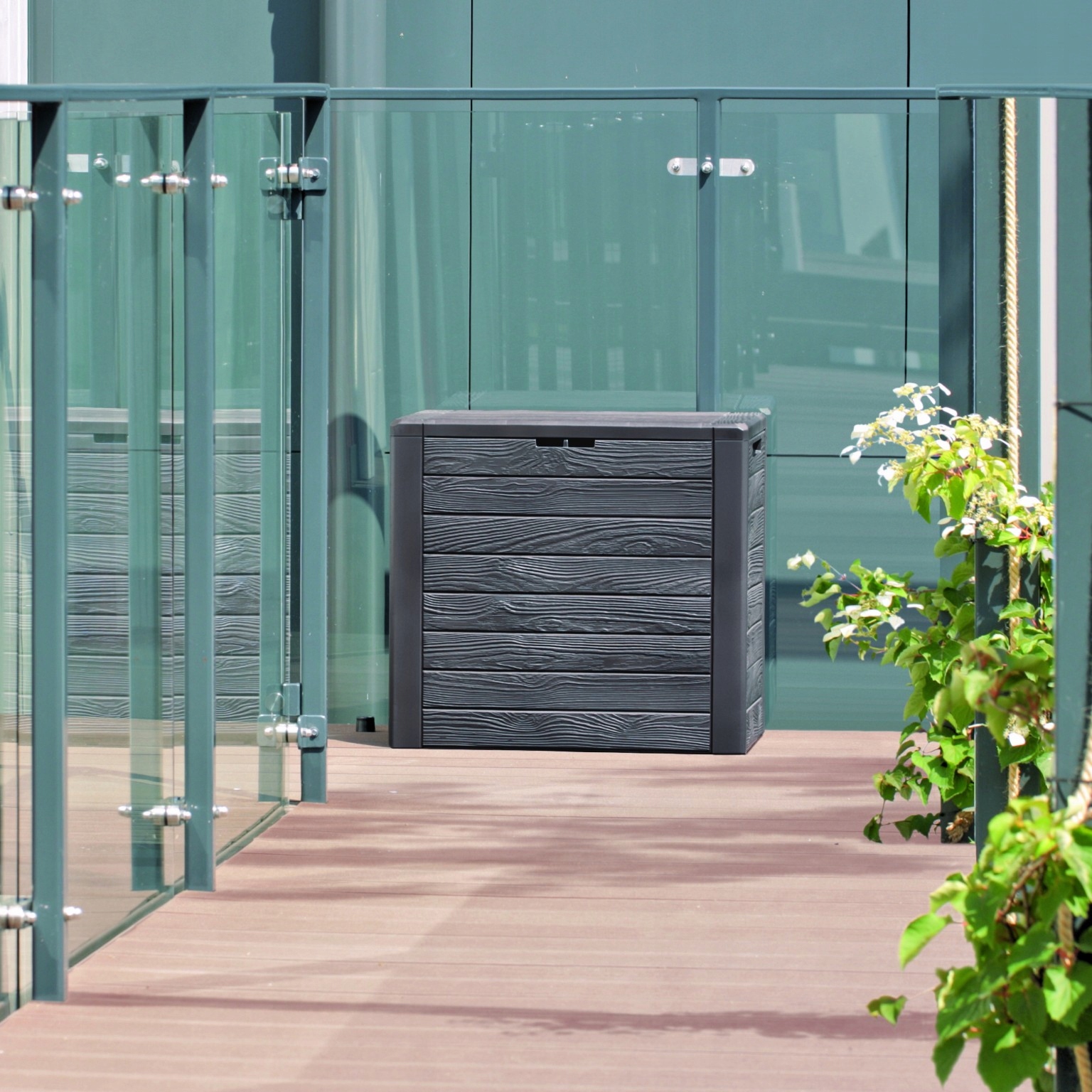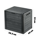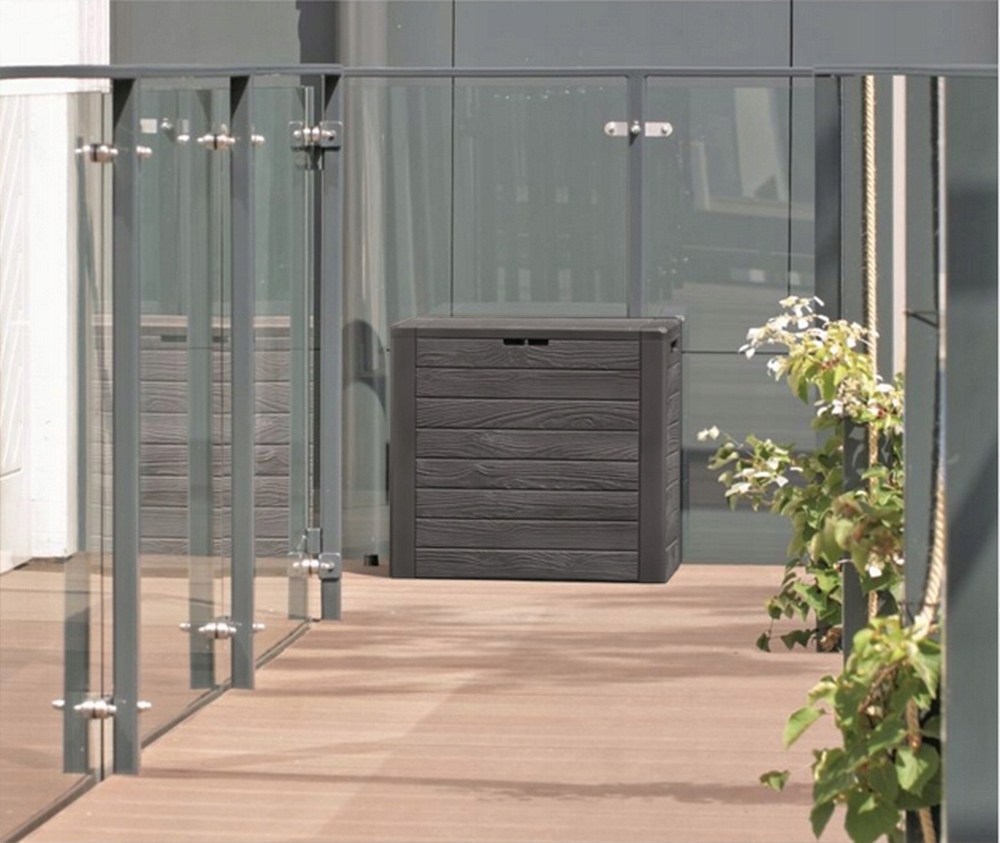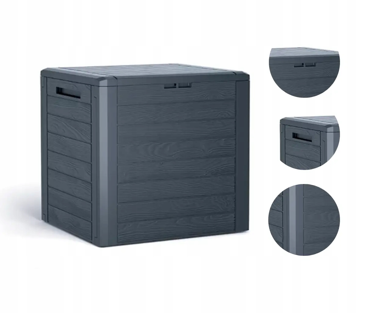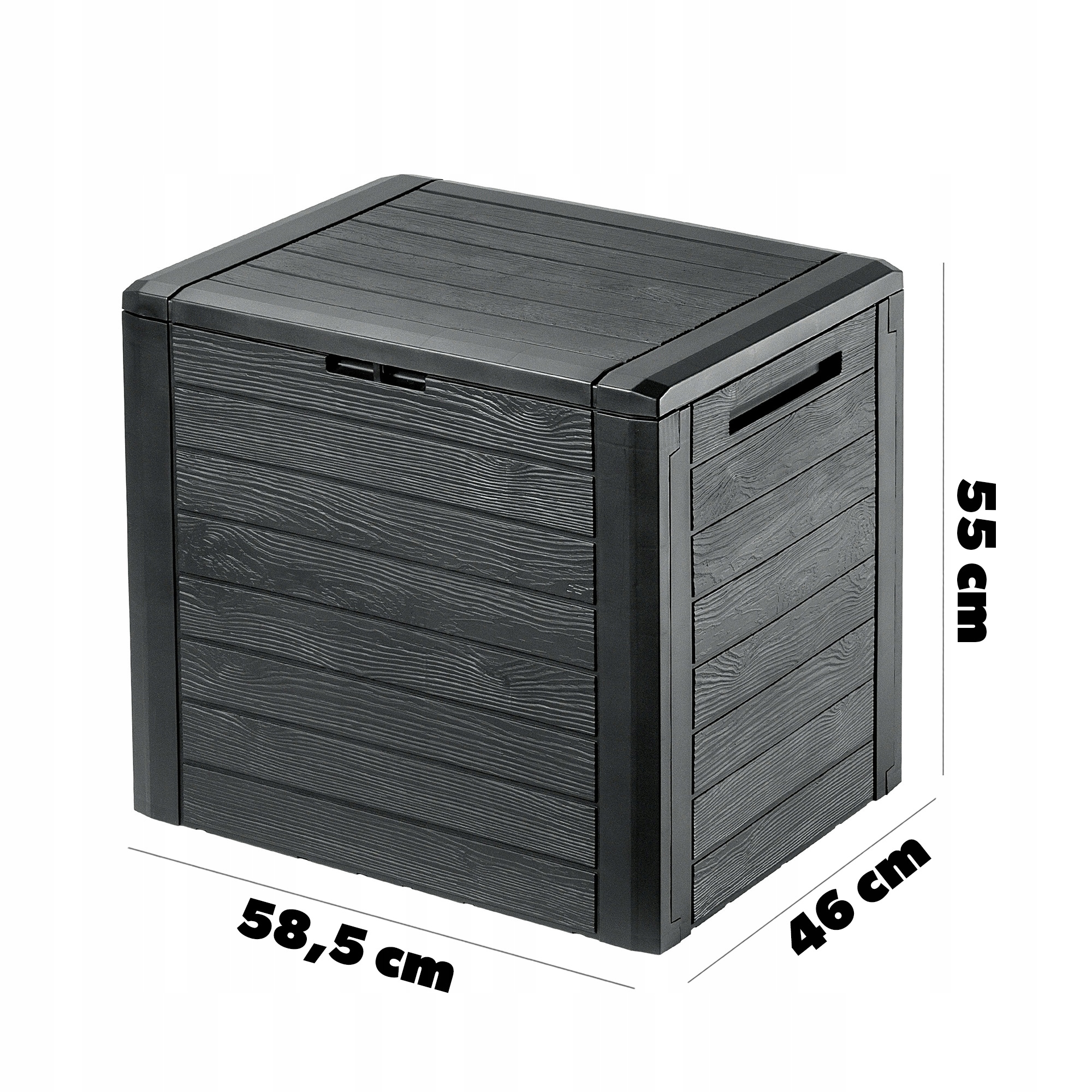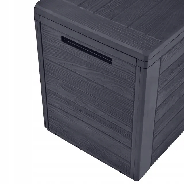 Praktyczna - skrzynia (kufer) ogrodowa wykonana z wytrzymałego tworzywa o fakturze naturalnych drewnianych desek. Sprawdzi się w domu, na balkonie, tarasie, w ogrodzie, w garażu czy szopie. Zabezpiecza przechowywama przedmioty przez kurzem i deszczem.