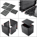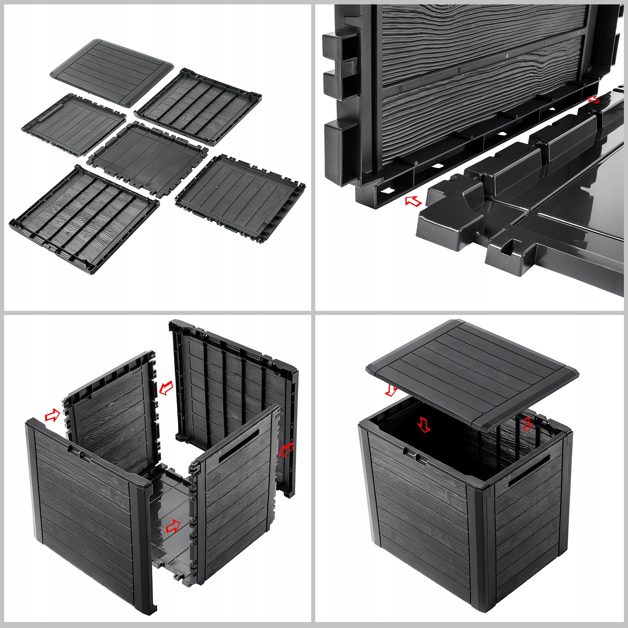 Сундук сложен и образует плоский пакет. Ящик WOODEBOX требует самостоятельной сборки. В монтажные инструменты не нужны, все соединения защелкиваются. После складывания ящика не можно повторно разложить.