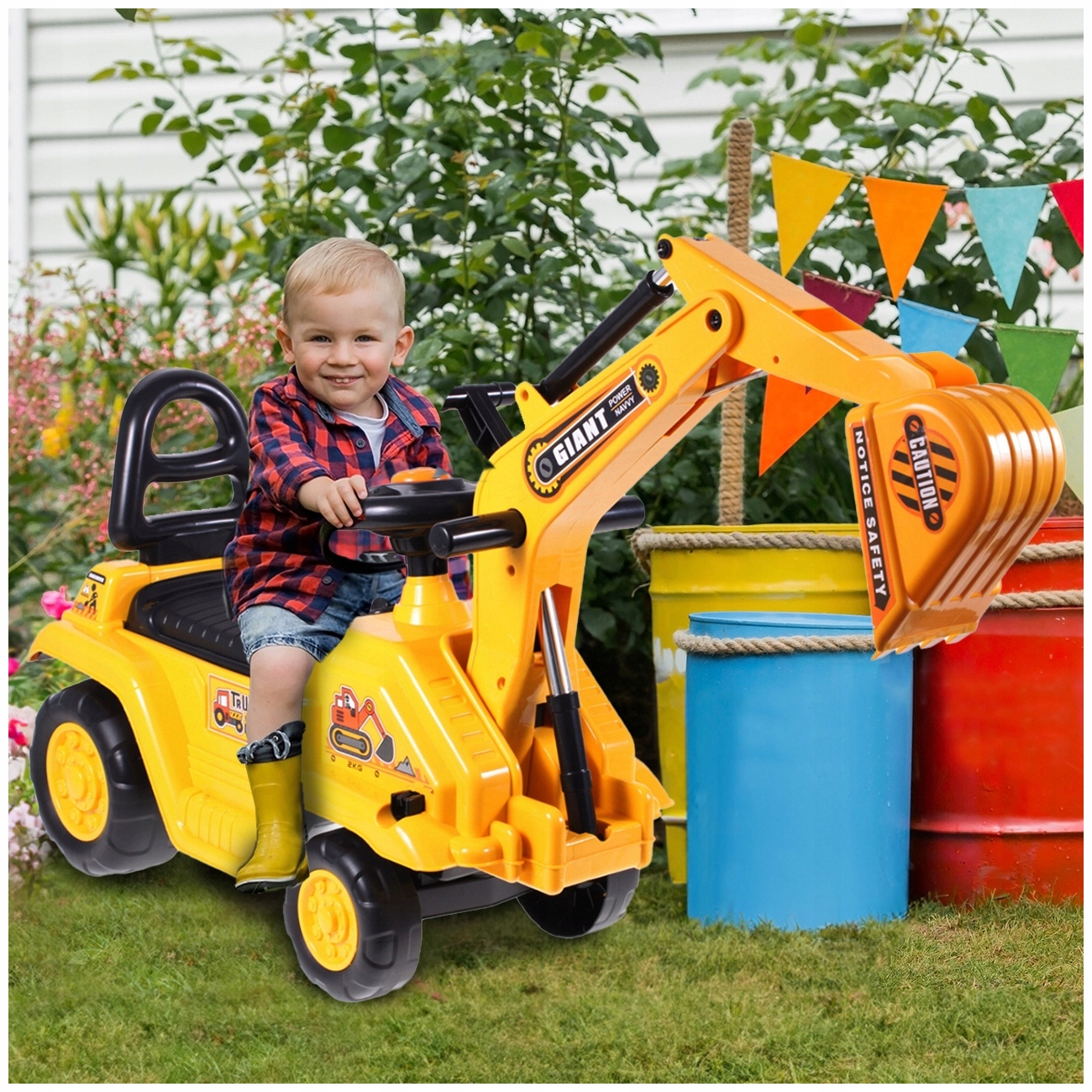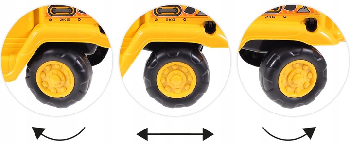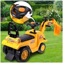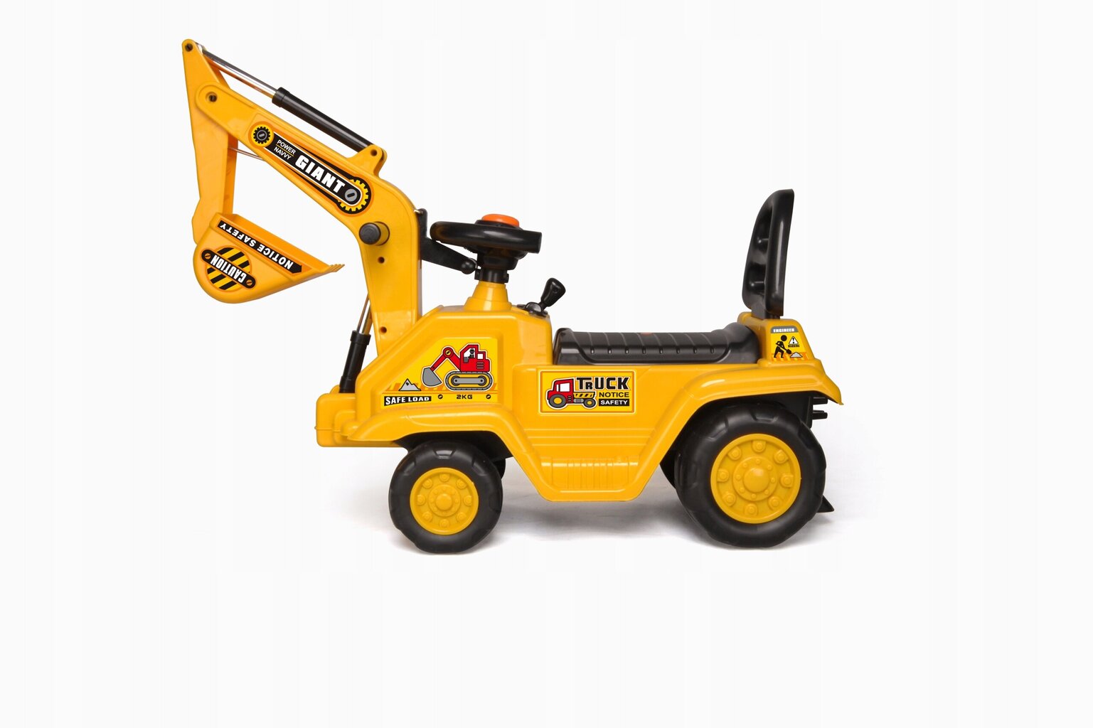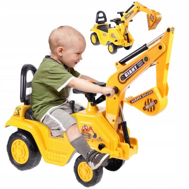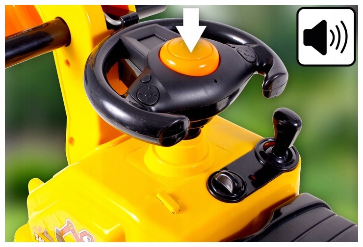 Łyżka opuszcza się i jest sterowana przez dziecko. Jeździk koparka jest świetną zabawą, dziecko uczy się nowych rzeczy, sama radość z tego zachęca je do korzystania z jego zalet.