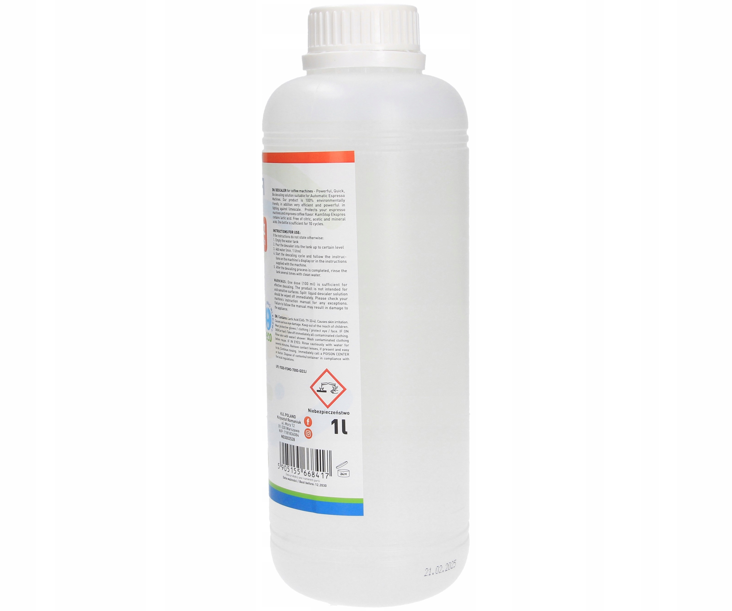STOSOWANIE: Jeśli instrukcja nie wskazuje inaczej - opróżnić pojemnik na wodę i wlać 100ml odkamieniacza do zbiornika danego modelu ekspresu i uzupełnić wodą (minimum 1 litr). Włączyć cykl usuwania kamienia i postępować zgodnie z instrukcjami pojawiającymi się na wyświetlaczu urządzenia lub umieszczonymi w instrukcji dołączonej do ekspresu. Proporcje zastosowania odkamieniacza i wody uzależnione są od producenta i rodzaju ekspresu do kawy. W przypadku ekspresów z automatycznym odkamienianiem należy postępować zgodnie z instrukcjami wyświetlanymi na panelu. Po zakończeniu procesu odkamieniania należy kilkakrotnie przepłukać zbiornik czystą wodą. Regularne usuwanie kamienia w ekspresie przedłuża jego żywotność i zapewnia bezusterkowe działanie.