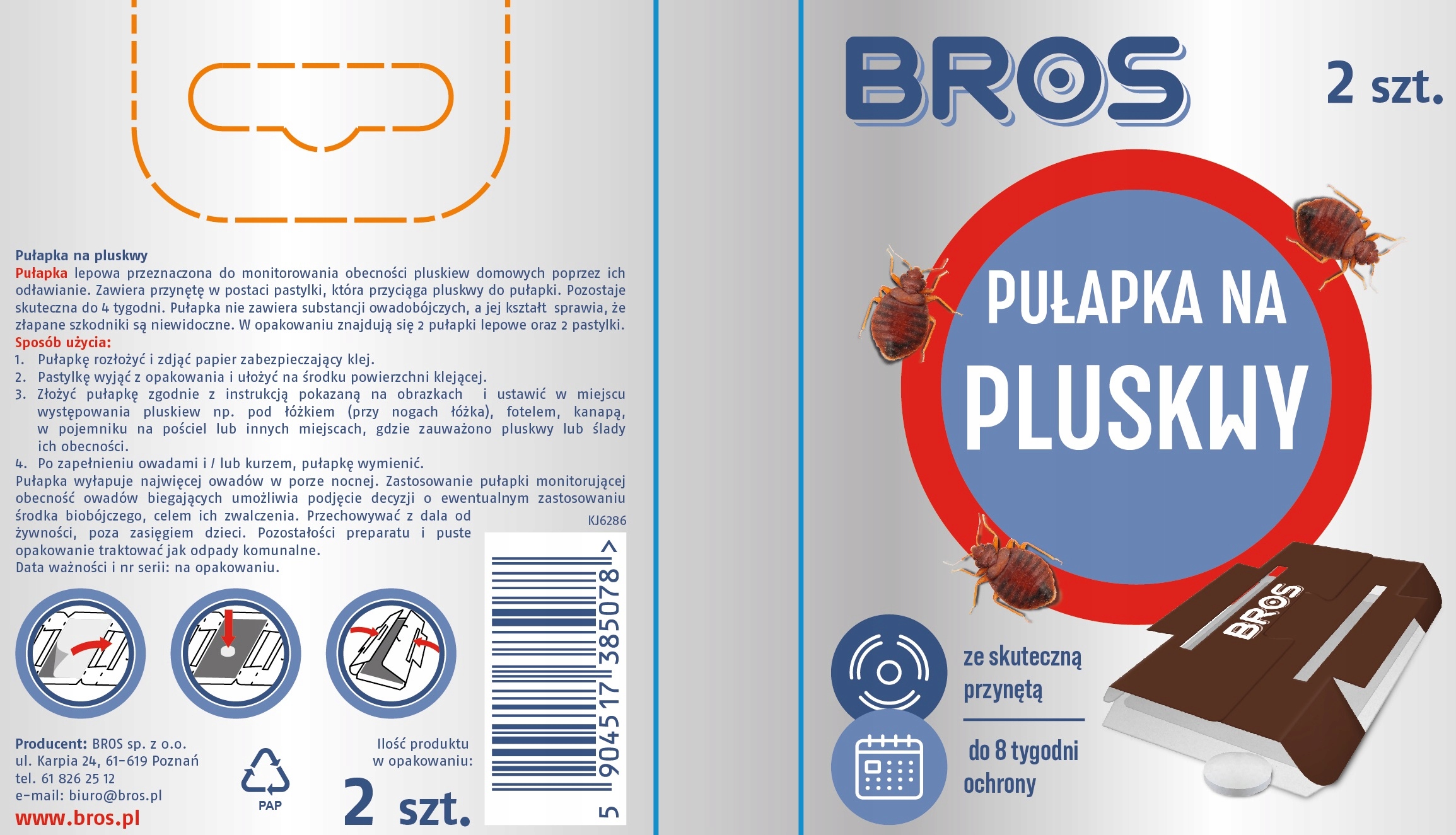 Pułapka lepowa przeznaczona do monitorowania obecności pluskiew domowych poprzez ich odławianie. Zawiera przynętę w postaci pastylki, która przyciąga pluskwy do pułapki. Pozostaje skuteczna do 4 tygodni. Pułapka nie zawiera substancji owadobójczych, a jej kształt sprawia, że złapane szkodniki są niewidoczne. W opakowaniu znajdują się 2 pułapki lepowe oraz 2 pastylki.