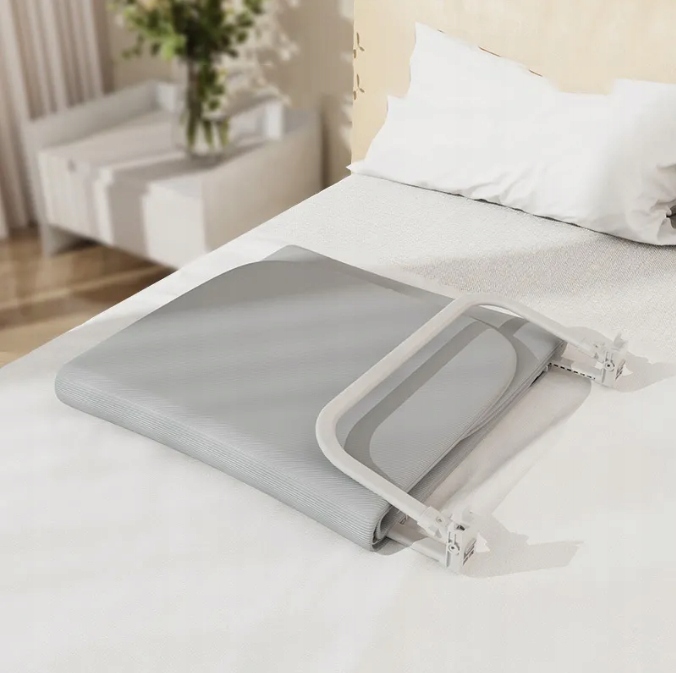 Smart Barrier - очень удобный способ быстро и эффективно защитить кровать. Есть складывается с обеих сторон, поэтому его легко хранить, не раскручивая элементов. Перила уже полностью сложены, поэтому вам просто нужно вынуть их из переносную сумку и сразу положить под матрас. Ножки регулируются и могут быть отрегулированы до нужной толщины матраса и избегать зазоров между матрасом и перилами. Укрытие перила займет у вас меньше минуты, а сумка с ручкой позволит вам взять ее куда угодно.