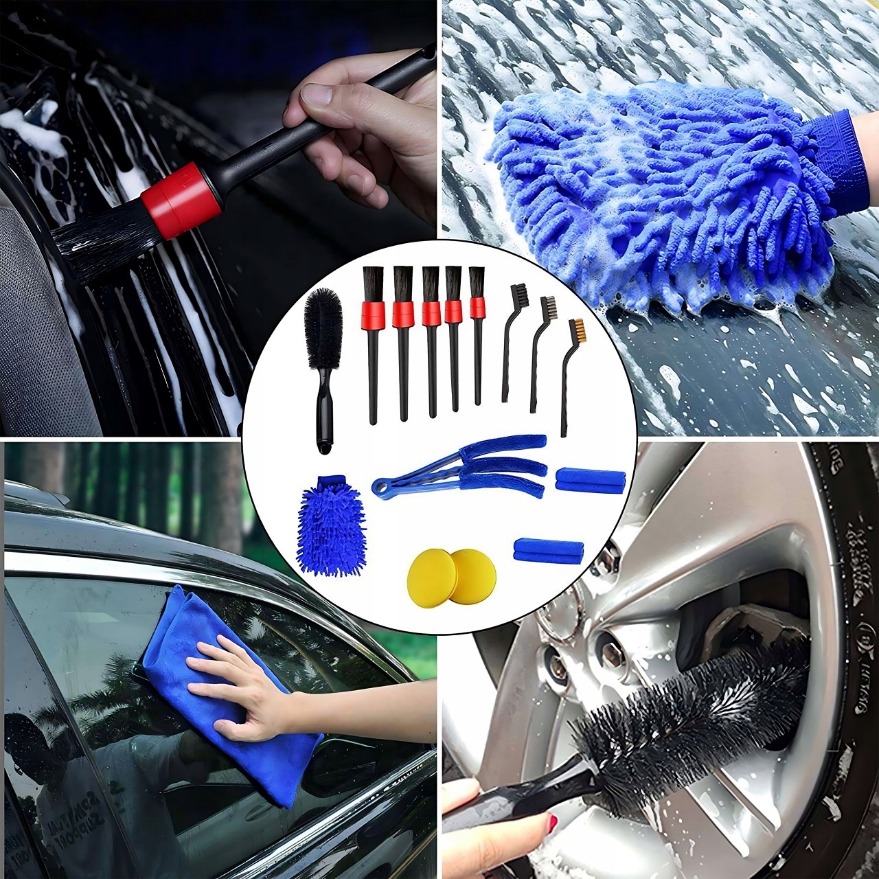 Zestaw zawiera 15 elementów czyszczących, które zapewniają kompleksowe i efektywne efekty sprzątania Twojego pojazdu. Auto wygląda jakby wyjechało prosto z fabryki! W zestawie znajduje się 5 pędzelków do detali, 3 szczotki druciane, dwustronne rękawice wykonane z mikrofibry, dwie gąbki, które pomogą Ci w dokładnym polerowaniu karoserii. Zestaw uzupełniają także puchowa szczotka oraz specjalna czyścik do kratek wentylacyjnych.