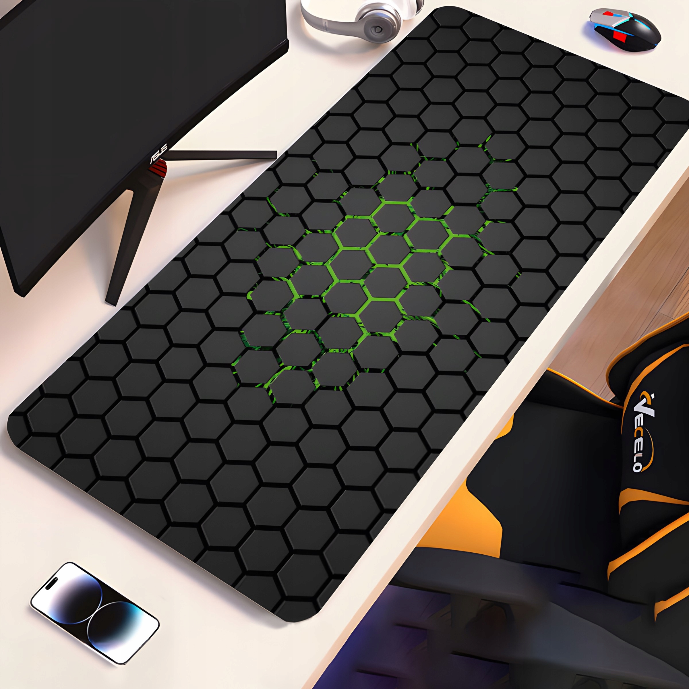 ⭐ DUŻY ROZMIAR 90x40 CM – zapewnia przestrzeń na klawiaturę, myszkę i inne akcesoria, gwarantując wygodę podczas intensywnych sesji gamingowych.
