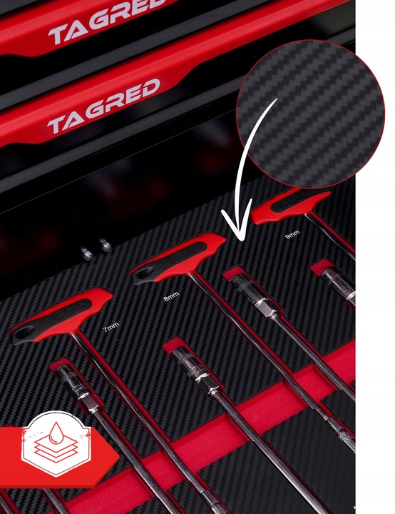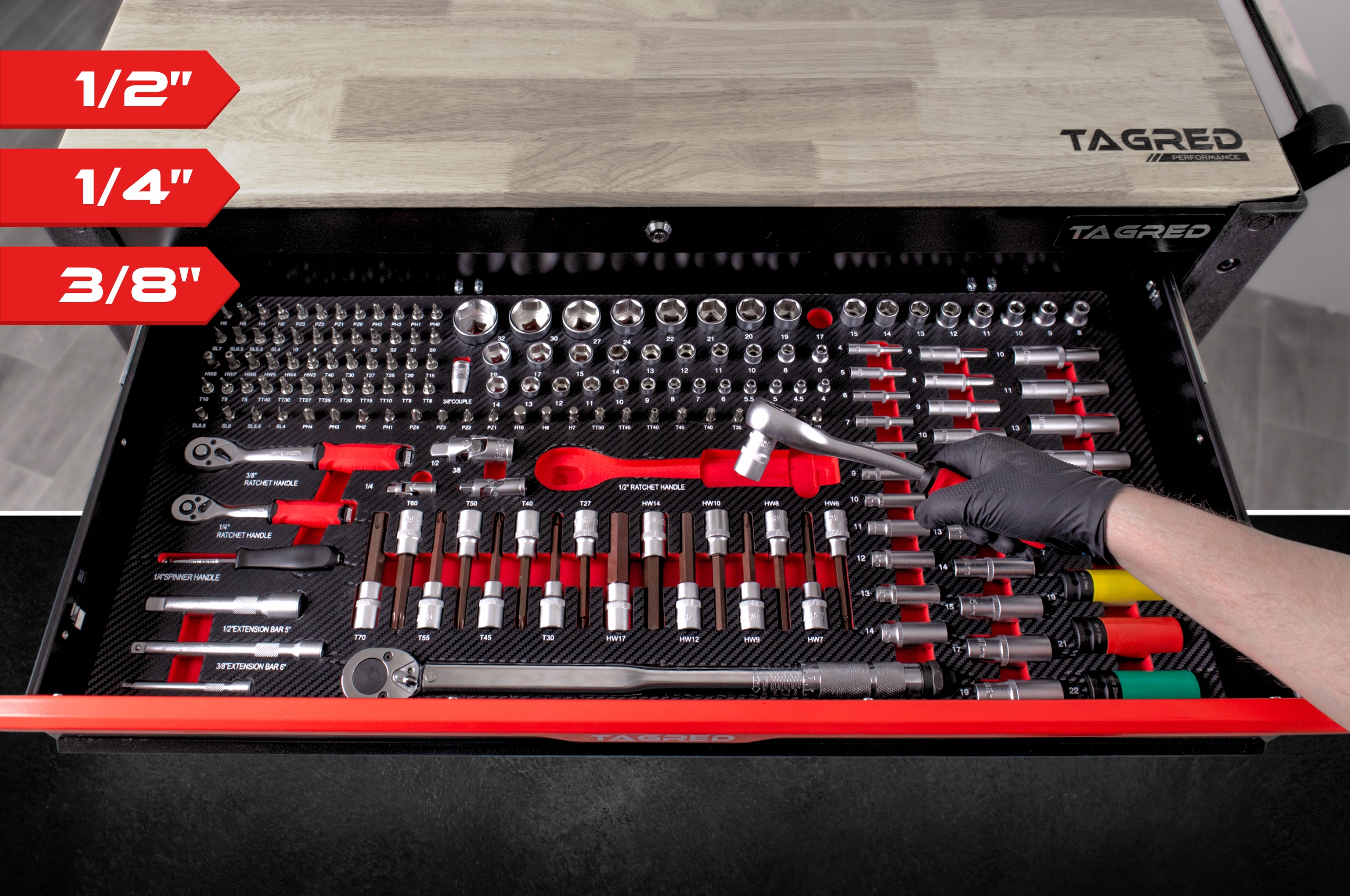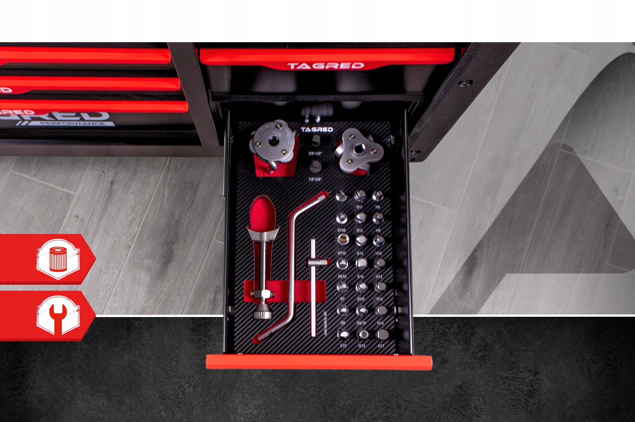 Dzięki zastosowaniu wytrzymałej wyściółki EVA, nasze wkłady są odporne na oleje, smary i wodę, co sprawia, że idealnie sprawdzą się w każdych warunkach warsztatowych.