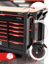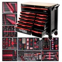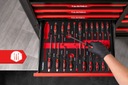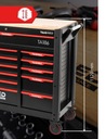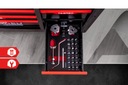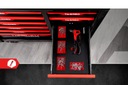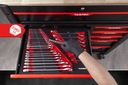 12 szuflad na łożyskach kulkowych, z automatycznym domykaniem, umożliwiają wygodne przechowywanie i szybki dostęp do narzędzi.