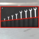 Zestaw kluczy składa się z 8 kluczy, zarówno oczkowych, jak i płaskich, w następujących rozmiarach: