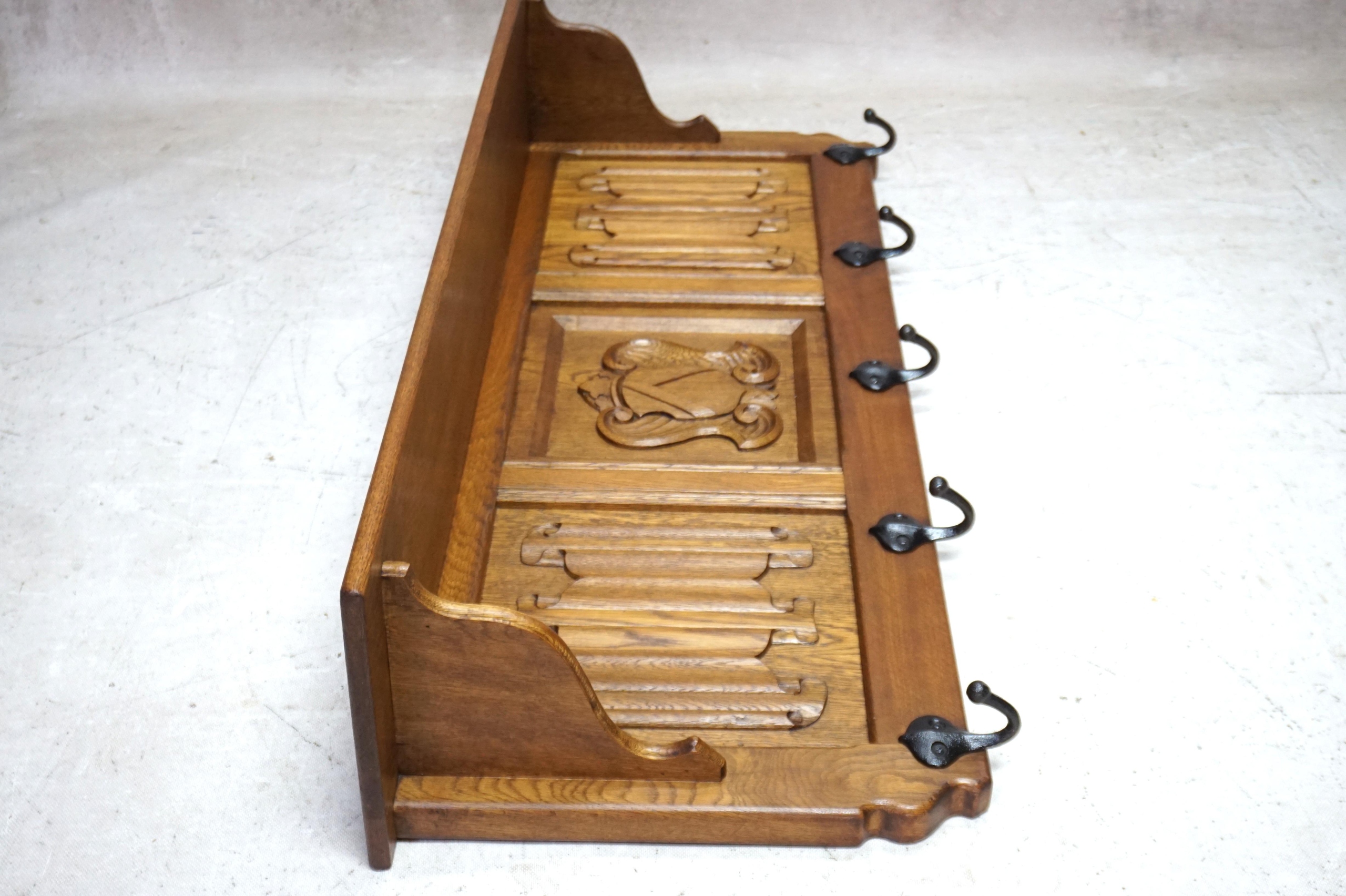 Wieszak z dębu w kolorze średnim, z pięknym rzeźbieniem