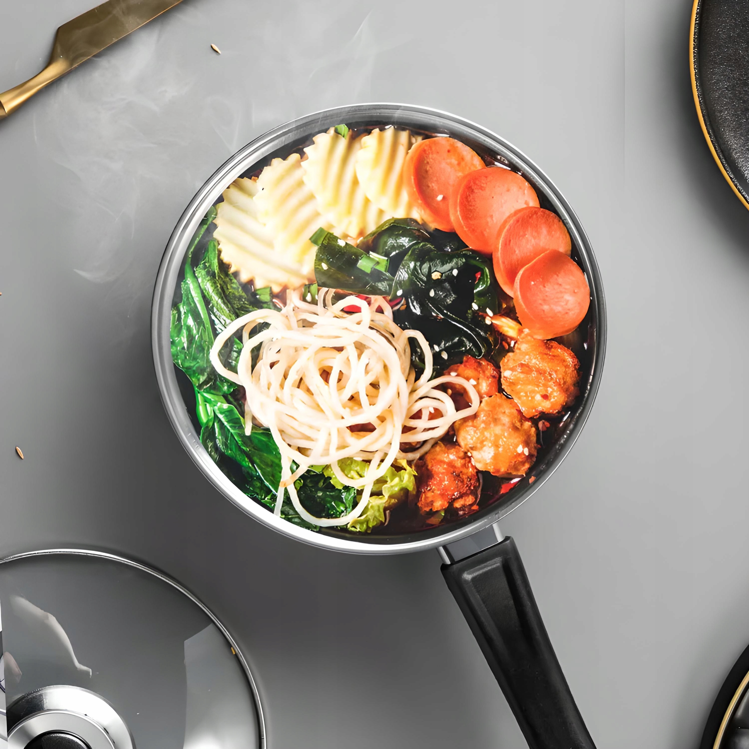 ✔️szklane pokrywki, mamy stały podgląd na gotujące się jedzenie w naczyniu