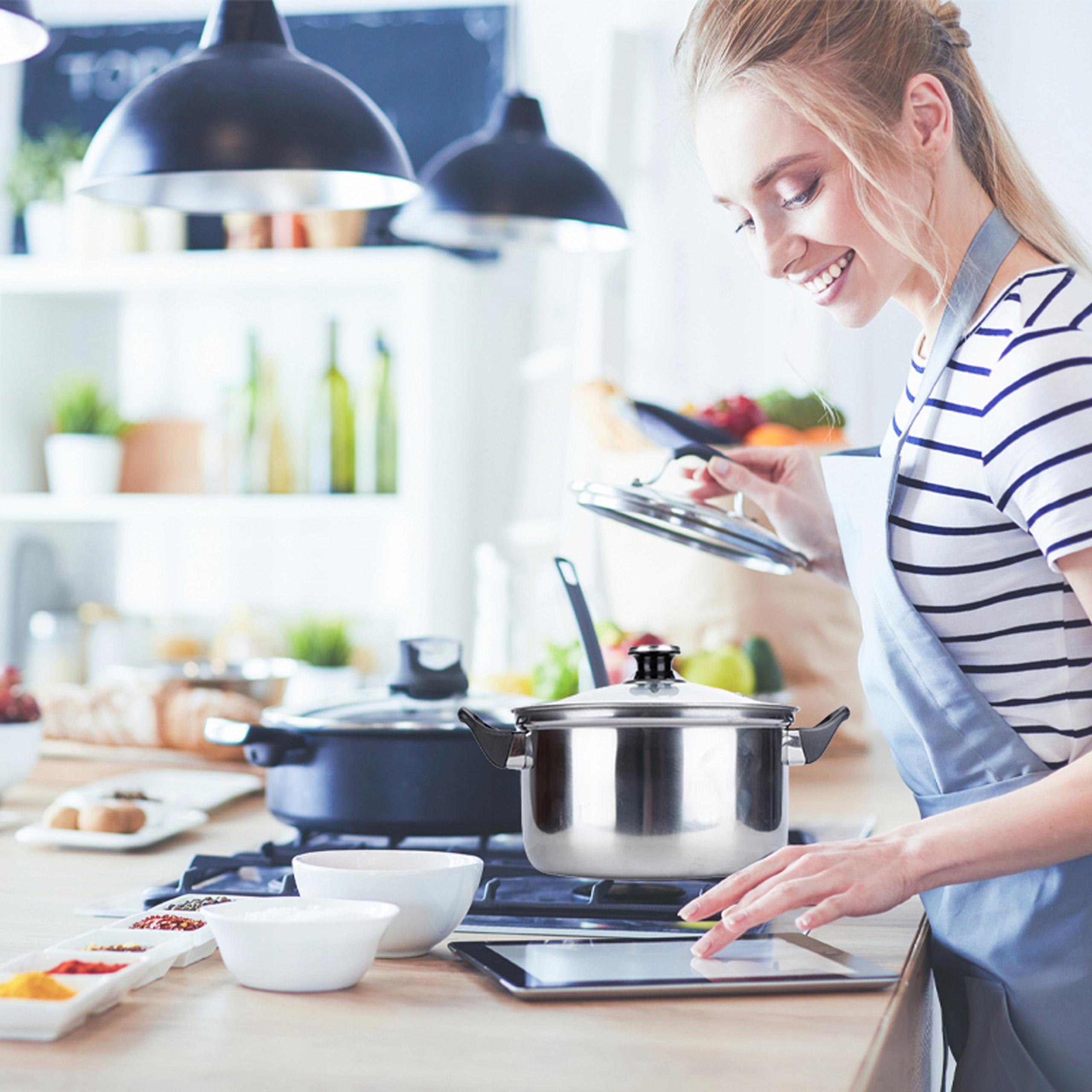 Набор посуды подходит для большинства типов плит, благодаря чему кастрюли имеют универсальность применение. С различной емкостью кастрюль и дополнительной посудой, как кастрюля и сковорода набор он будет использоваться для приготовления, жарки, а также тушения блюд. Кастрюли из нержавеющей стали, благодаря своему их очень легко содержать в чистоте. Кухонная утварь мы можем просто очистите, потому что они пригодны для мытья в посудомоечной машине.