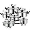 Набор кастрюль состоит из 12 элементов: 6 горшков и 6 крышек, благодаря такому расширенному мы можем приготовить много разных блюд для семейного торжества. Самый большой горшок имеет 24 см в диаметре и 9,5 см в высоту, благодаря своим размерам идеально подходит для приготовления супа. Остальные 4 средних кастрюли диаметром 21,8, 20, 18 см отлично подойдут для приготовления пищи картофель или другие блюда. В комплект также входит кастрюля 16 см и сковорода диаметр 24 см.