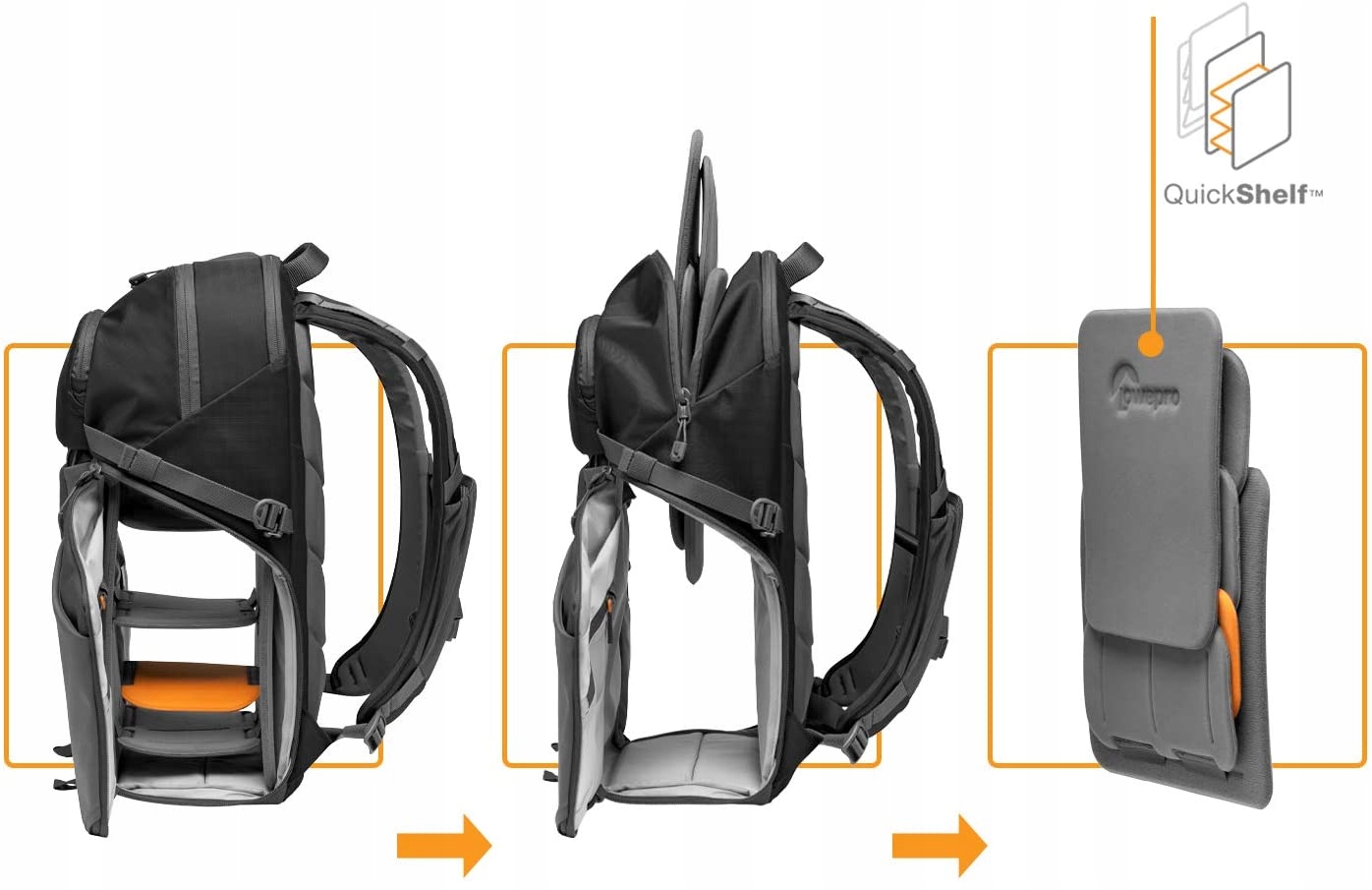 Wyróżnia ją system QuickShelf czyli półki na sprzęt, które możemy łatwo i szybko skonfigurować pod aktualne potrzeby lub wyjąć je z torby, aby uzyskać maksymalną przestrzeń na rzeczy osobiste.