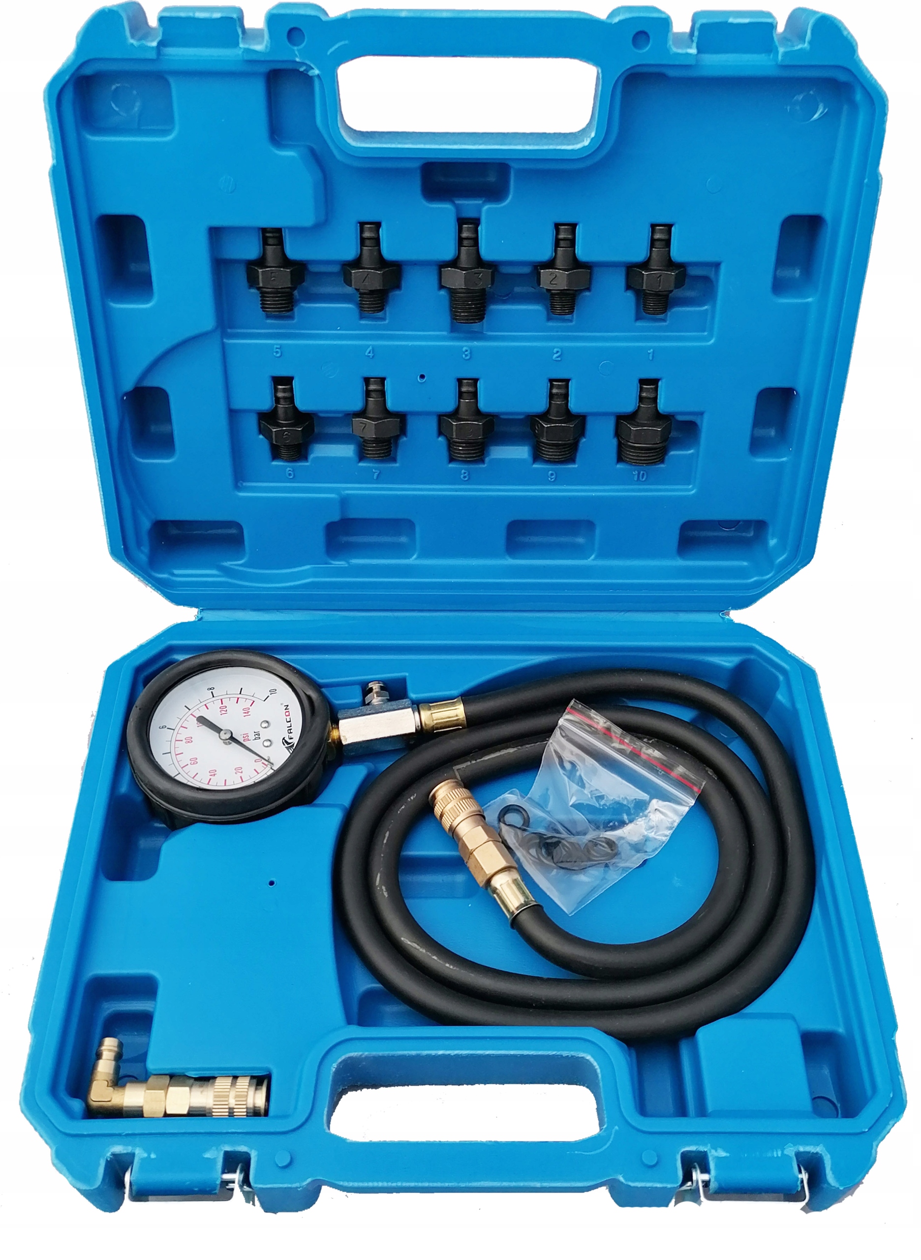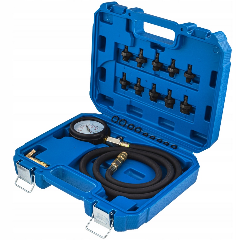 Miernik umożliwia pomiar ciśnienia oleju w silnikach samochodów osobowych i ciężarowych, a także w automatycznych skrzyniach biegów. Miernik wyposażony w gumową osłonę. Całość zestawu w poręcznej walizce ułatwiającej transport i przechowywanie. Cechami charakterystycznymi produktu są wysoka jakość wykonania, długi okres bezawaryjnej eksploatacji oraz łatwość użycia. Zestaw zawiera wiele złączek i adapterów przez co może być stosowany do samochodów różnych marek japońskich, europejskich i amerykańskich.